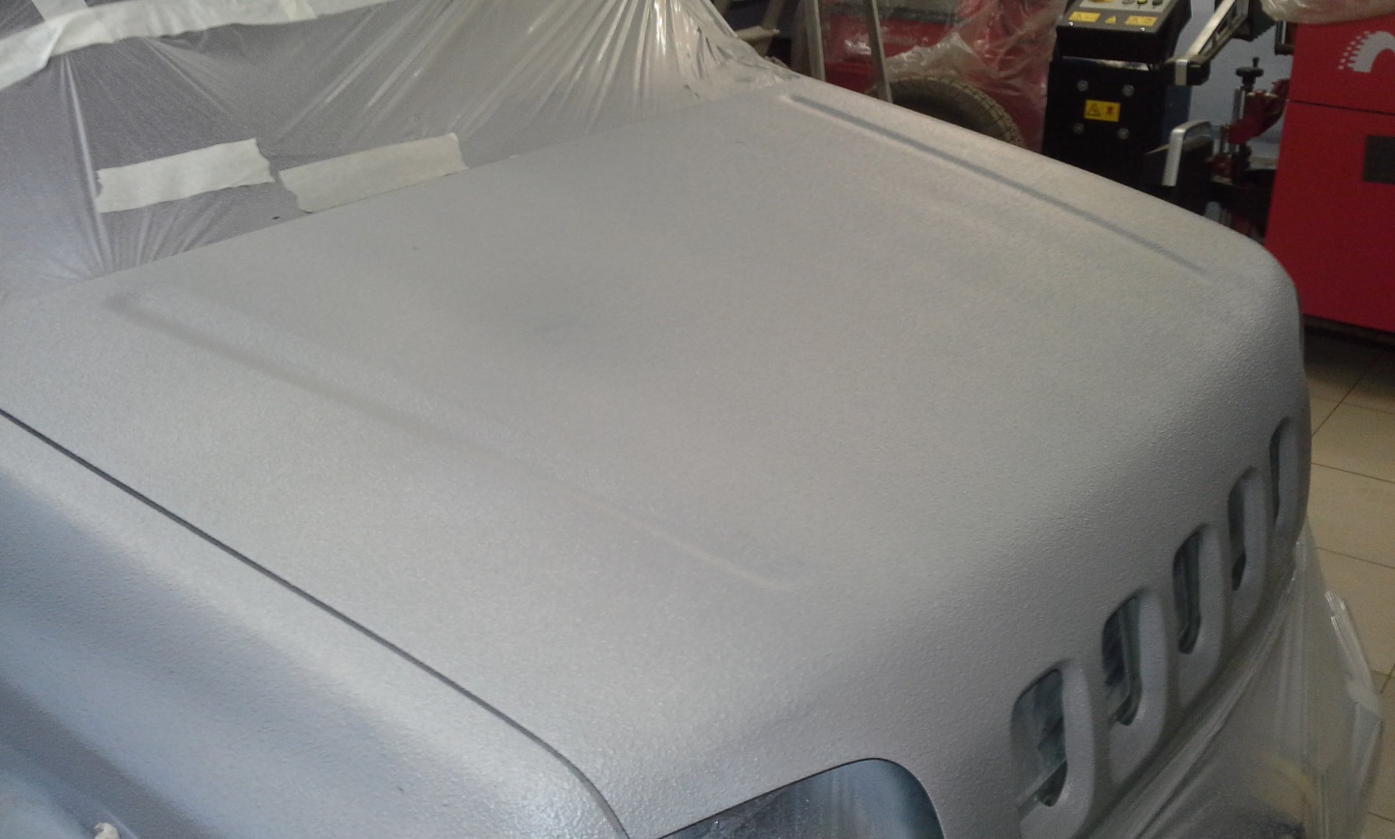 Могу сказать следующие: если обливать целиком, то Line-X (материалы видел) или более бюджетно Z-Protect (не щупал, но я думаю суть одна). Насчет УФ стойкости - ни чего не скажу. Если небольшие работы или например вы не в Москве, то двух компонентным полиуретаном. Там нужен спец. пистолет около 2500руб. на рынке брал и компрессор.