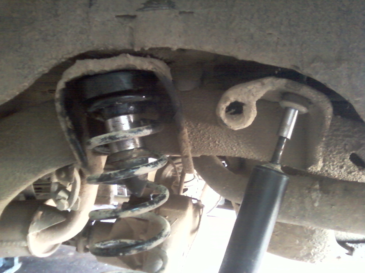 Долифтовал заднюю подвеску "по правильному" , вонзил проставку в А рычаг и в кардан . Удленнители отбойников . Солдатики на родные аммортизаторы. Все это делалось к тому что бы вернуть родные пружины + проставки . Так вот не получилось , посмотрел Индивида фотки , родная пружина + родная резинка + проставка . И вот не получается так , пружина уходит с посадочного места , и попадает в положение когда в середине пружины удленнитель отбойника , при такой постановке у пружины запас на елозение 1см по диаметру. Решил оставить свои старые пружины ( ХЗ от чего) , насадил на амортизатор солдатик , и при вывешивании пружина разжалась , кстати родная тоже разжималась и проставка отставала от рамы . Получилось что солдатик 40мм при накручивании на часть с резьбой амортизатора , удлинняет его на 8см , а не 5 как задуманно . Пришлось под пружину воткнуть ВАЗовскую проставку 2см , что бы при вывешивании пружина не выпадала. Выгладит это так.