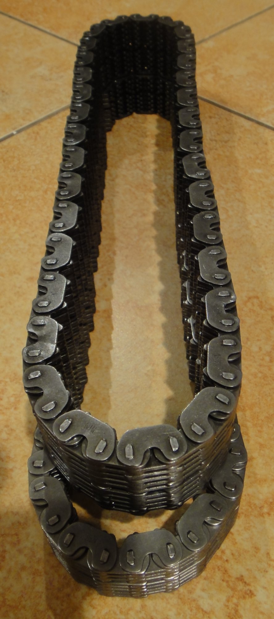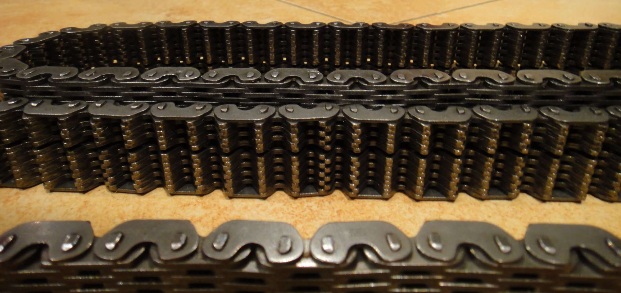 вот разница АТ и МТ цепи. МТ- толще и короче (22 звена). АТ уже и длинее (35 звеньев)