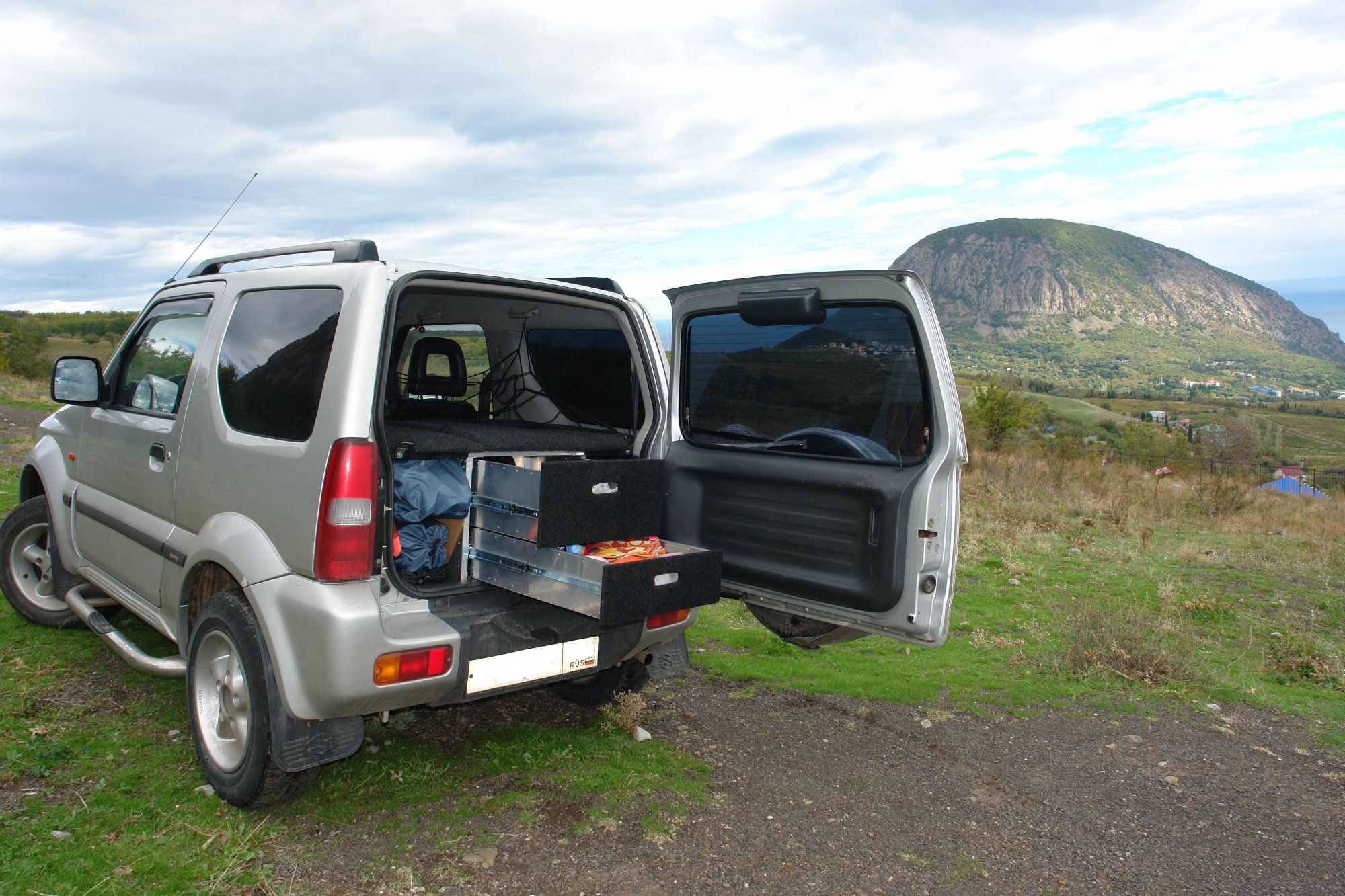Наконец-то мы осуществили свое давнее желание - смонтировали багажно-спальную систему для нашего Джима 2002 года рождения. Получилось удобное спальное место для двоих человек (рост 190 и 170 см), а также возможность компактно распределить шмурдяк (см фото). Обкатку система прошла в сентябре текущего года в поездке по Украине. Заключение: отличная система, предоставляющая возможность автономии для двоих путешественников. Хронометраж показывает, что спальное место устанавливается и демонтируется не более чем за 10 минут.