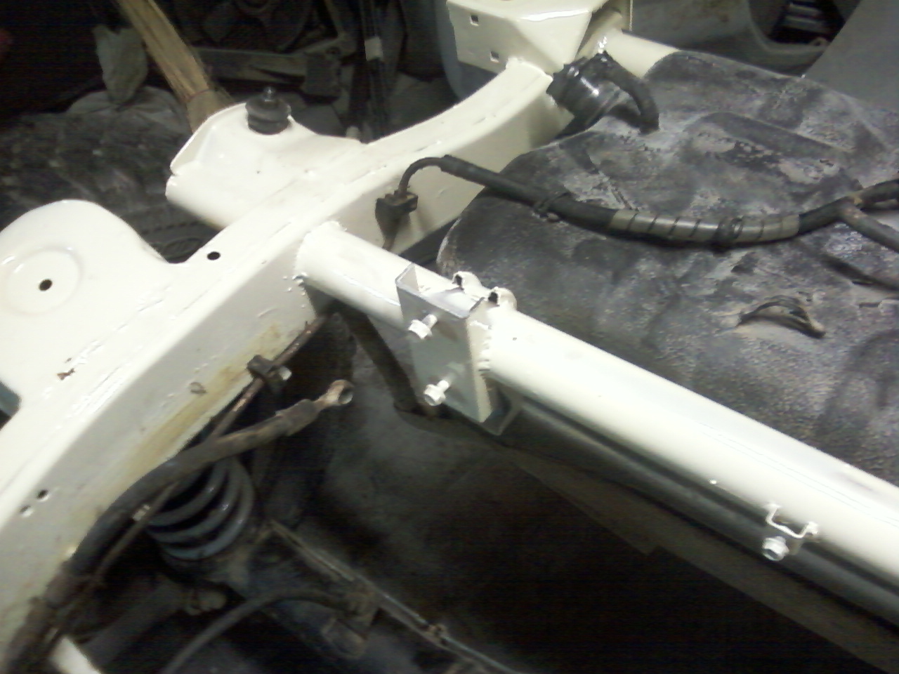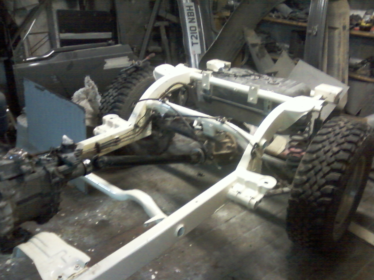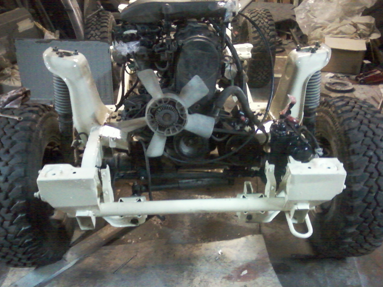 Дрыгатель на месте , на "новых" Б\у подушках , и на более хитрых кронштейнах , левый по ходу движения , с рычагом уходящим в купол КПП . Задний сальник коленвала, новое сцепление и контрактная КПП + маховик. Переднии пружины заменены на Б\у , у них верхний виток оказался не таким заломанным как на моих. Мосты и вся подвеска установлены , бензобак встал как родной на новые крепления.
