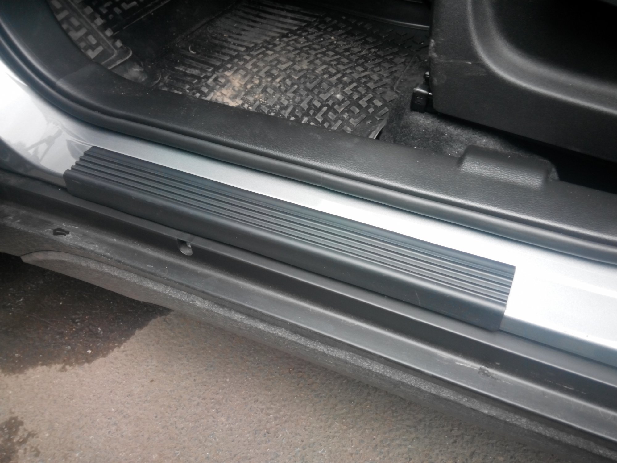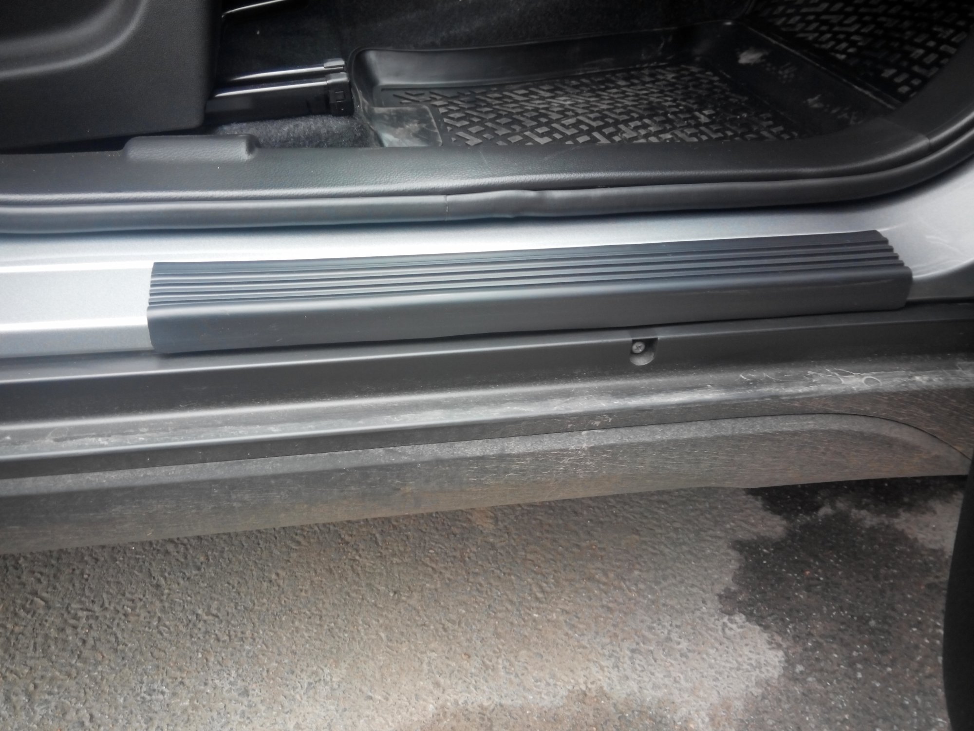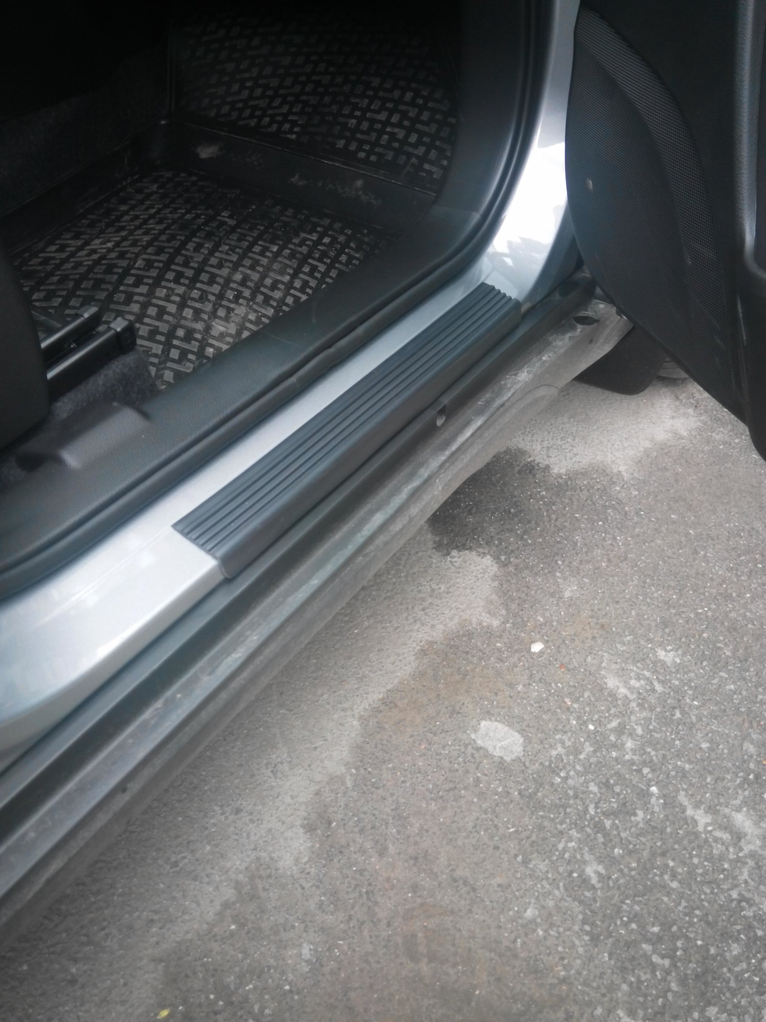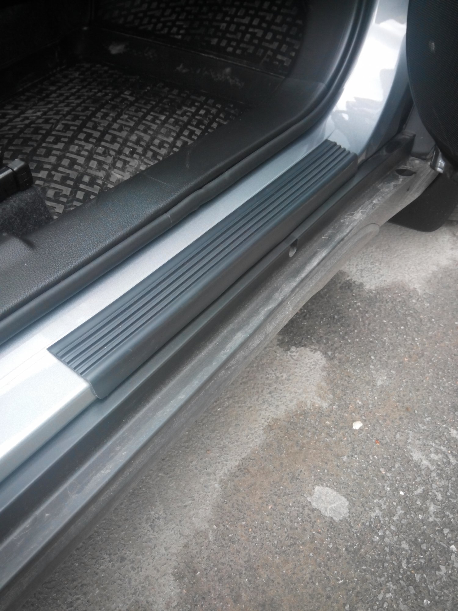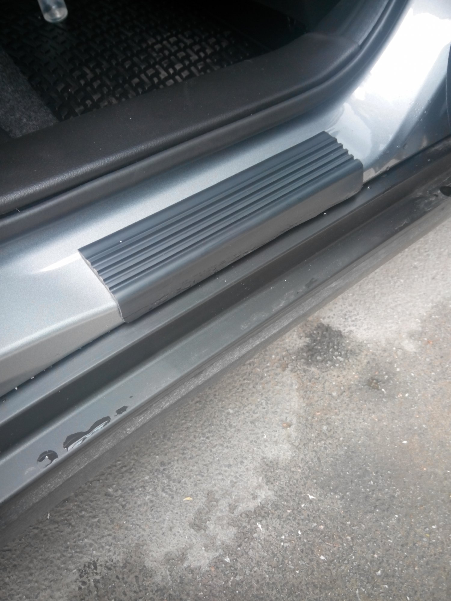 качество приличное сзади две полоски скотча 3М. Когда ставил себе на пороги сзади по контуру накладки намазал авто клеем (DoneDeal) силиконовым прозрачным.