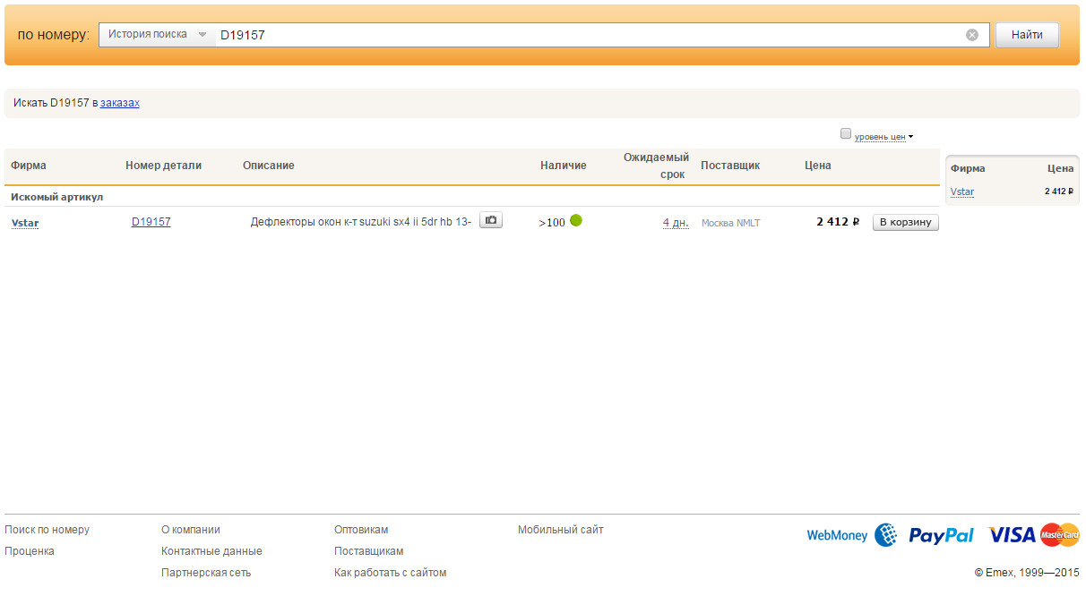Блин! А мне emex.ru выдает 2412 руб. :wideyed:Я брал в emex.ru код D19157. Сейчас они там стоят 1300, в автодоке 1500.