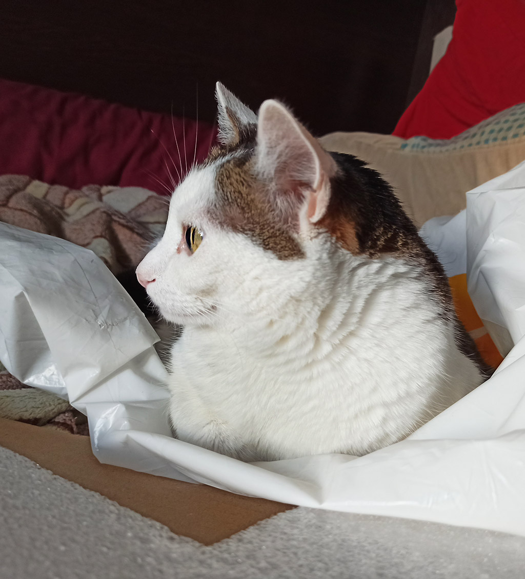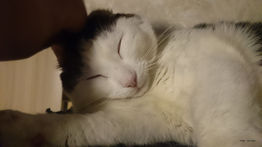Слева - котопанда (сноу-шу, три годика, 7кГ). Какая-то сволочь выкинула на улицу котенком, умещалась в ладони. Выросла, откормилась, добрейшей души создание. Носится как электровеник, главное не попасться на траектории: сшибет нафиг!