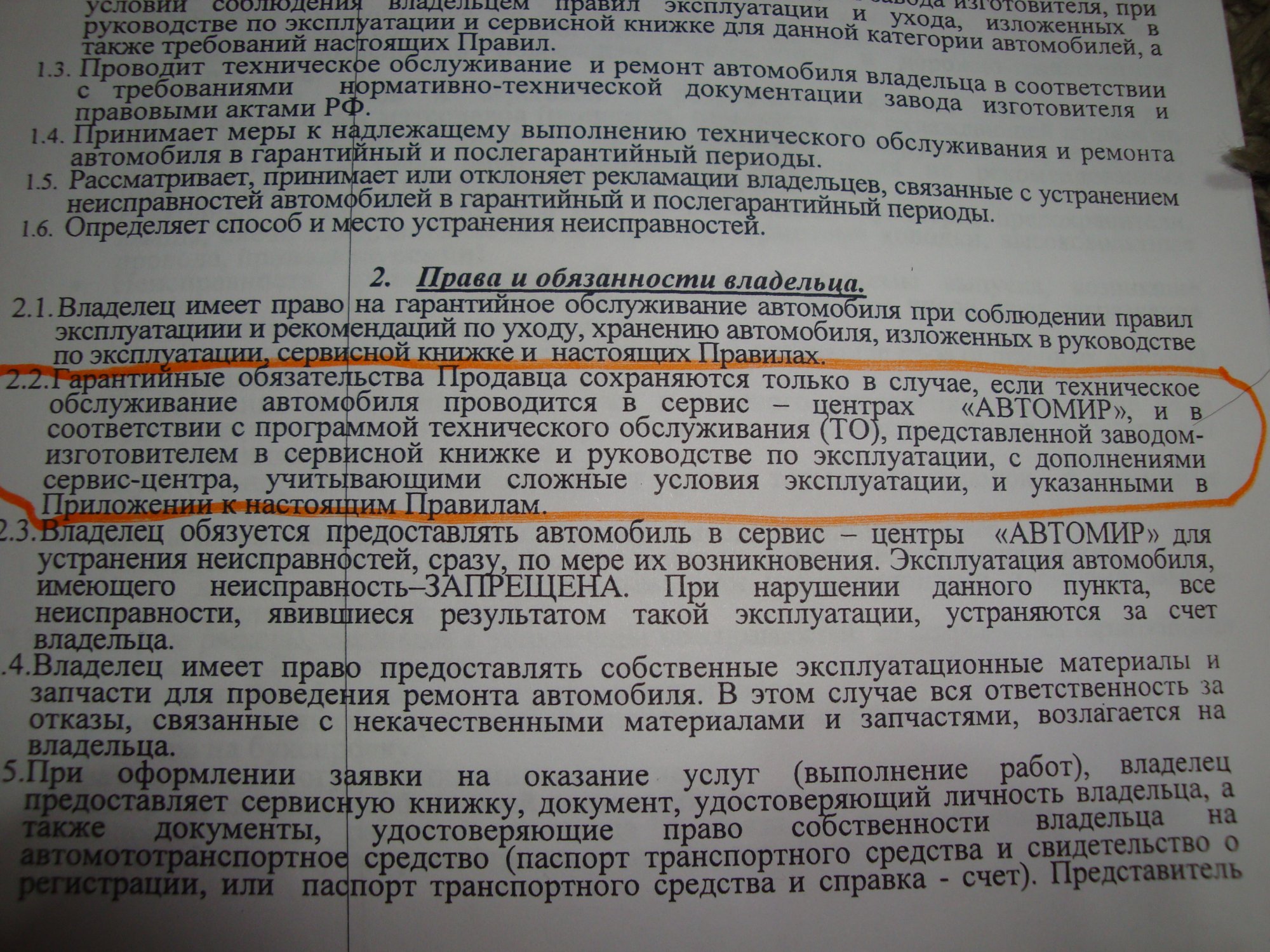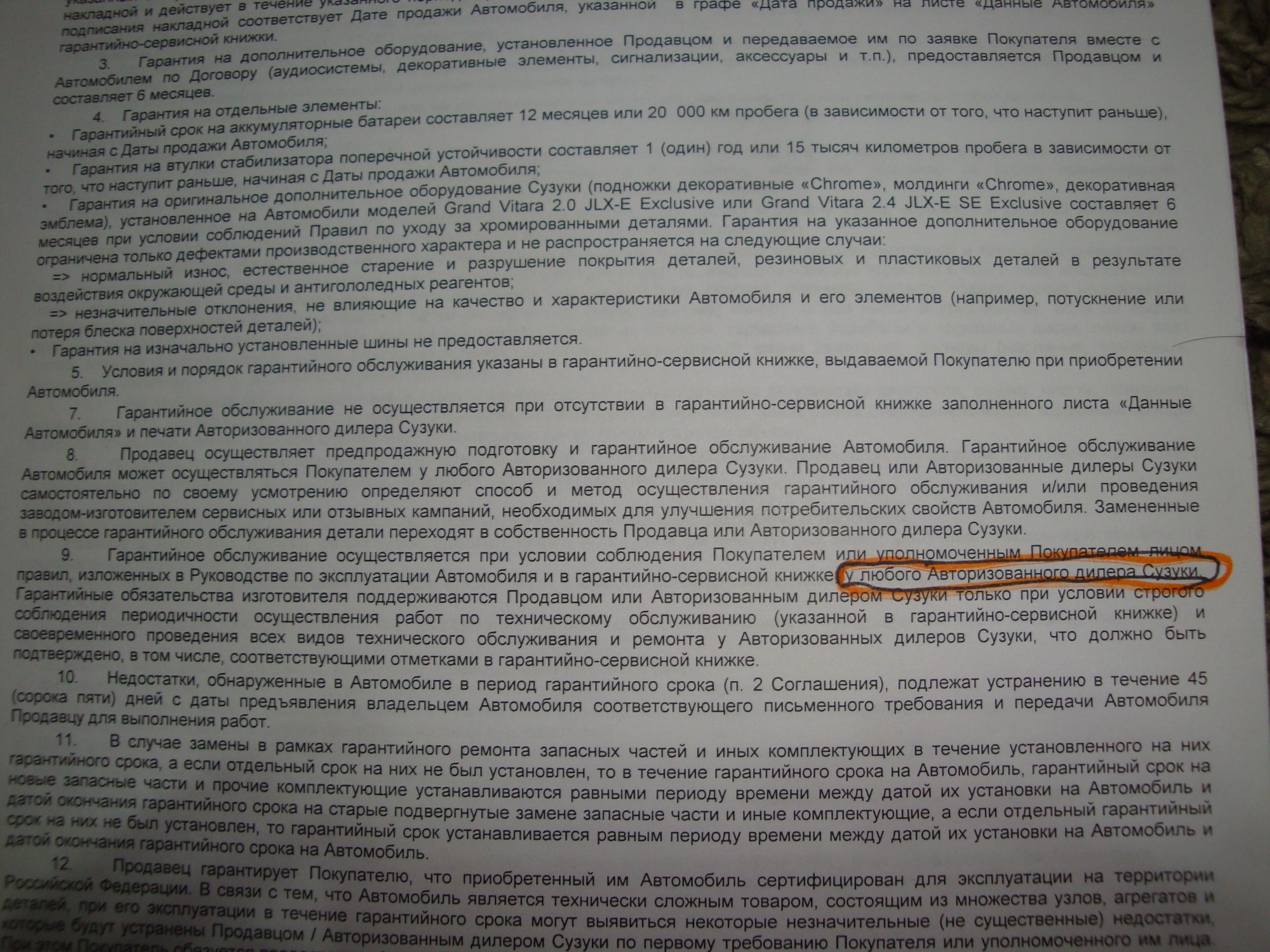 Полностью согласен.А с ОД будьте построже.А то хитрый АВТОМИР дал две бумажки по гарантии. 1.Приложение к договору купли - продажи,где указано что Вы имеете право обслуживаться У ЛЮБОГО АВТОРИЗОВАННОГО ДИЛЕРА СУЗУКИ.Т.е я могу купить авто во Владивостоке,а обслуживать в Калининграде. Посмотреть вложение 101008 За подписью обеих сторон договора.А стало быть имеет юридическую силу! 2.Памятка о гарантийном обслуживании.Вообще без подписей сторон. Посмотреть вложение 101009 Вторая бумажка(де юро )ни чего не значит.Берите все доки и вперед.Удачи в борьбе с ОД.