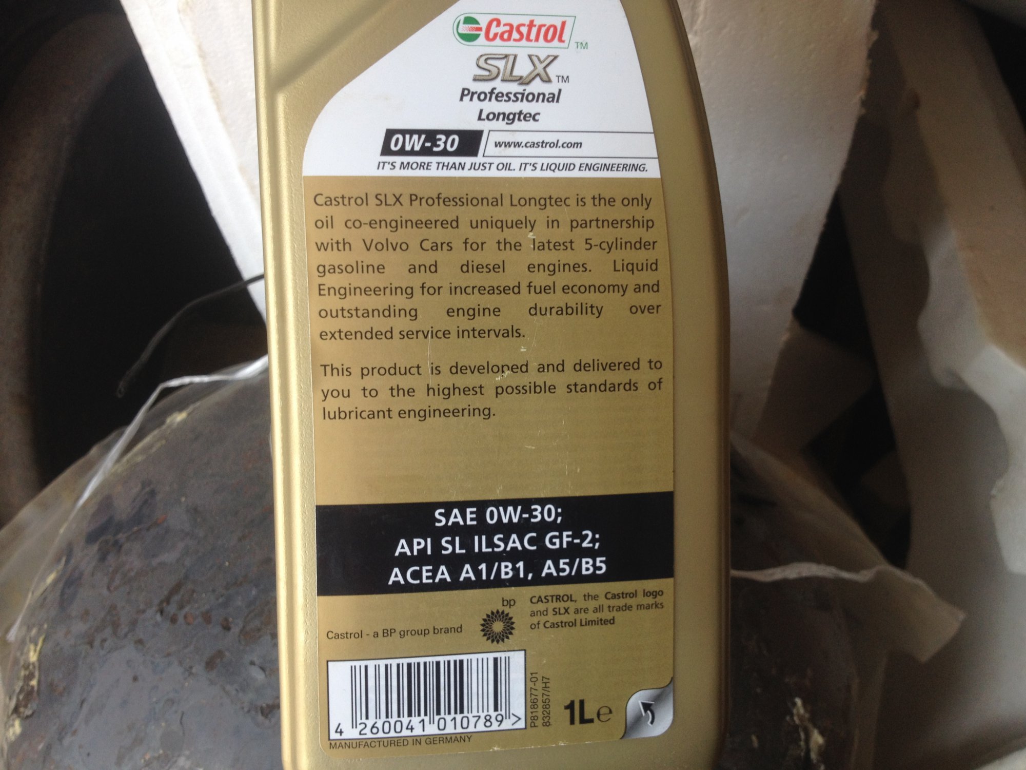 Была где-то инфа, что снято Castrol SLX Professional Longtec for Volvo Cars A5/B5 0W-30 с производства, теперь используют обычный EDGE 0W-30.Ребята, вот что залито в двигатель. Ни одного слова на русском, разобрал только, что написано ВОЛЬВО. Может оно вообще не наших двигателей? Посоветуйте, стоит ли его дальше использовать, а то осталось еще почти полтора литра.