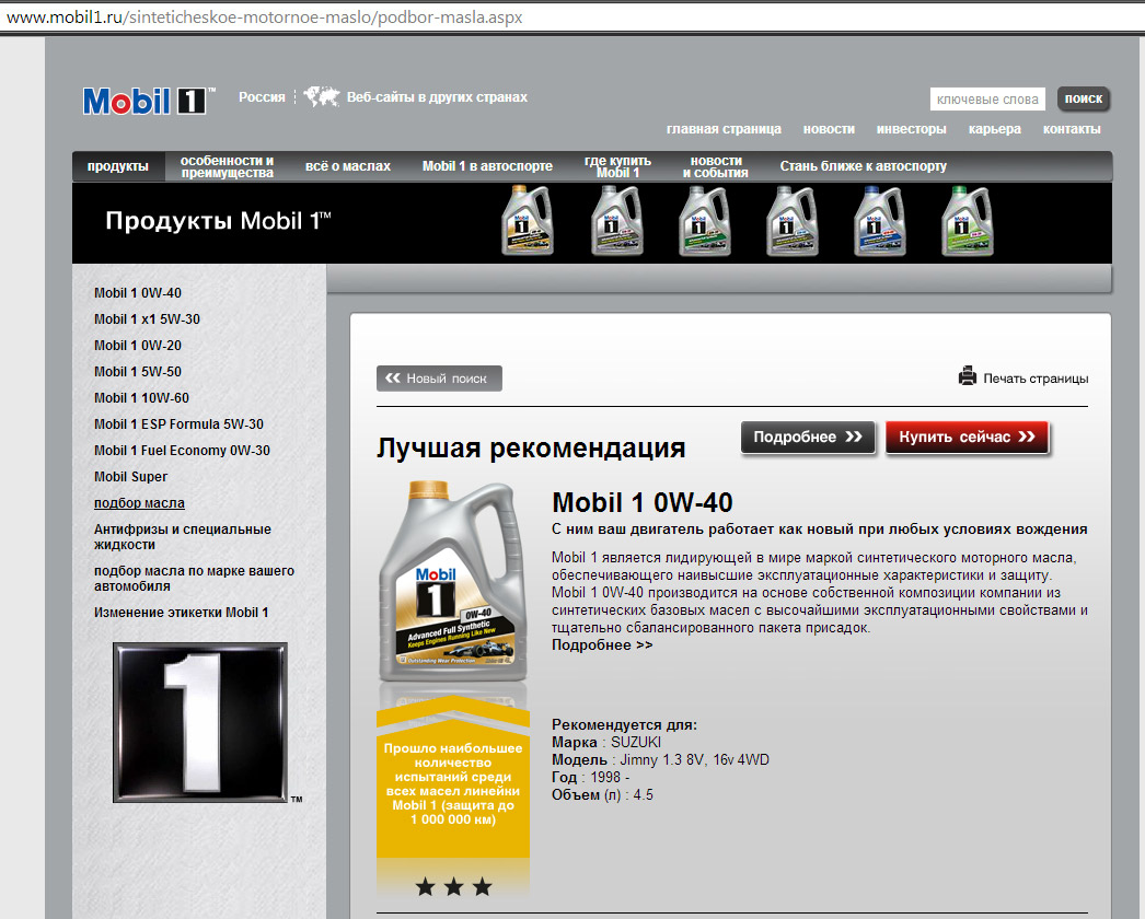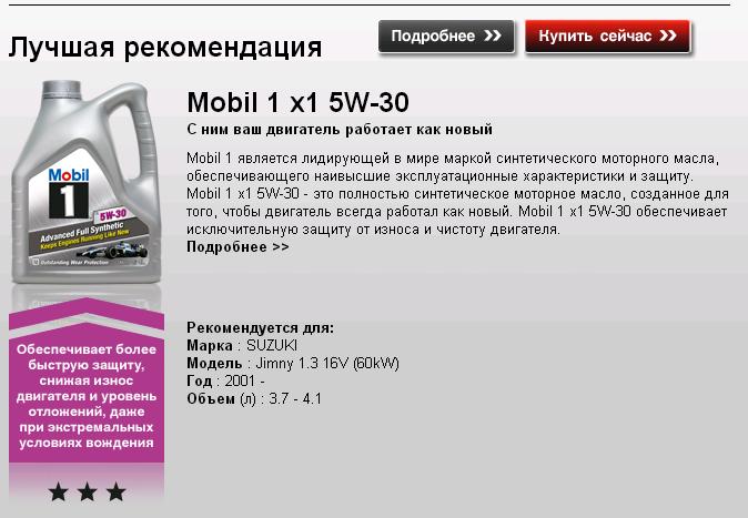 У Вас мотор 1998-2011 года или какого-то отдельного, например 2007?Для моего, Jimny 1.3, 16v 4WD 62,5 kw, 1998 - 2011 ноль вэ сорок рекомендуют
