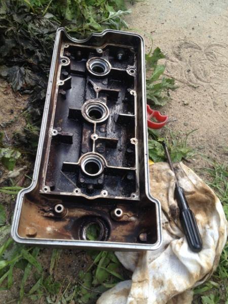 Обрисую суть проблемы: у данных двигателей объемом 2.7л есть одна характерная особенность: после определенного пробега (особенно это усугубляется применением некачественного масла в сочетании с большими интервалами замены) за счет большого количества отложений на поверхности маслоотделителя клапанной крышки левой головы — как результат мы получаем закупорку дренажных отверстий. В результате чего масло без каких либо препятствий проходит по "лабиринту" маслоотражателя и засасывается через сапун в задросельное пространство