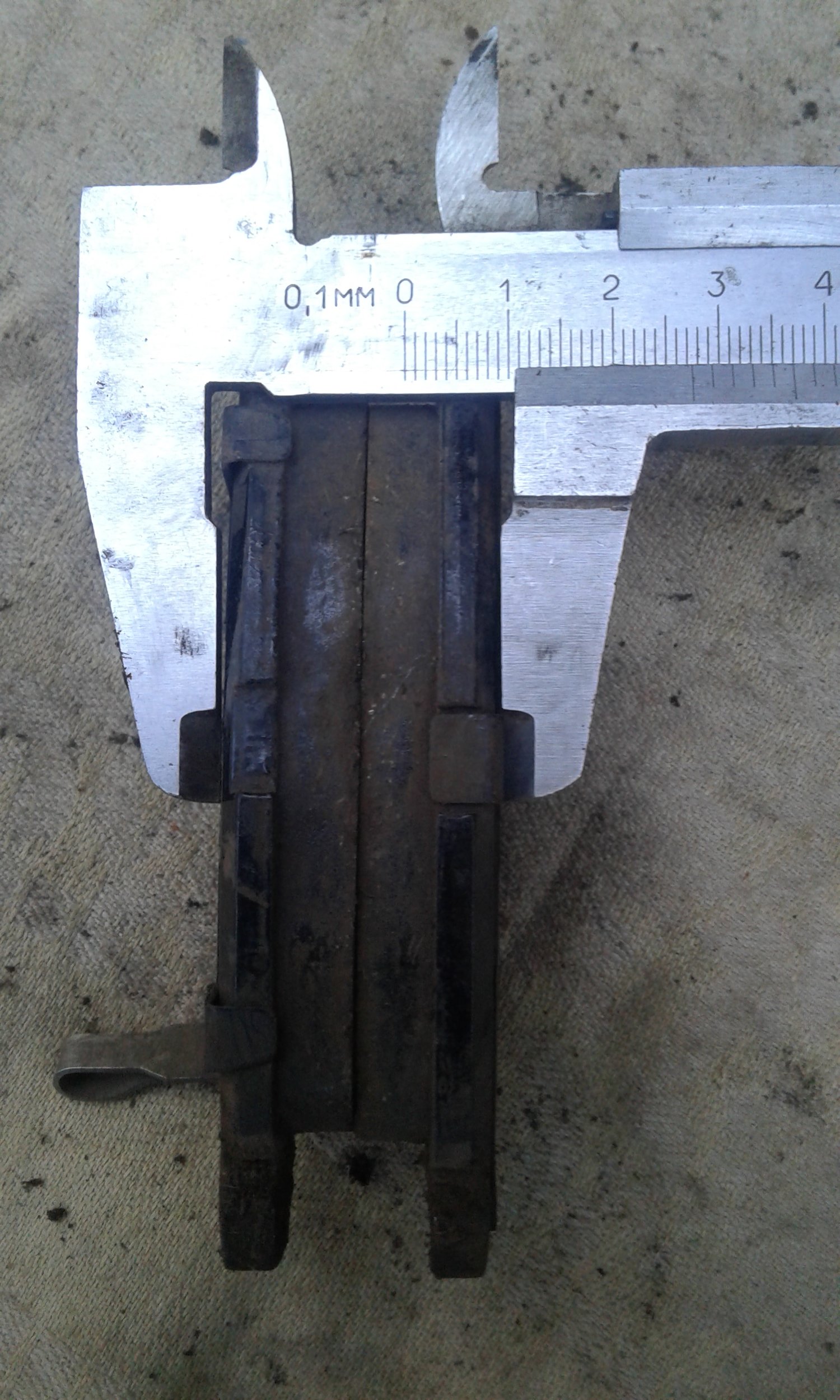 Получается, что она отходит на один мм больше, чем наружная, отсюда и дребезжащий звук. Наружная же сидит мертво. Разбираю, вырезаю из оцинковки 0,8 пластинку 10 на 15, снимаю нижнюю пластину держателя колодок, подкладываю с низу и снова устанавливаю держатель. И есть результат! Колодка отходит от диска на минимальное расстояние, при вращении диска затирания нет. Проехался, вроде бы все ок. Работу проделал на обеих сторонах. Ситуация что на левой стороне что на правой идентична. Забыл сказать, что при первой разборке противоскрипную пасту использовал Mannol. Но она, скажем так, вытекла. (Продолжение следует )][/DOUBLEPOST])[DOUBLEPOST=1536686410][/DOUBLEPOST]И так , вторая часть Марлезонского балета . С передними колодками и суппорта ми разобрался. Для любителей технических моментов . Диаметр пальцев 9,8 мм. Длина пальца с резиновым кольцом 78 мм, без кольца 84 мм .