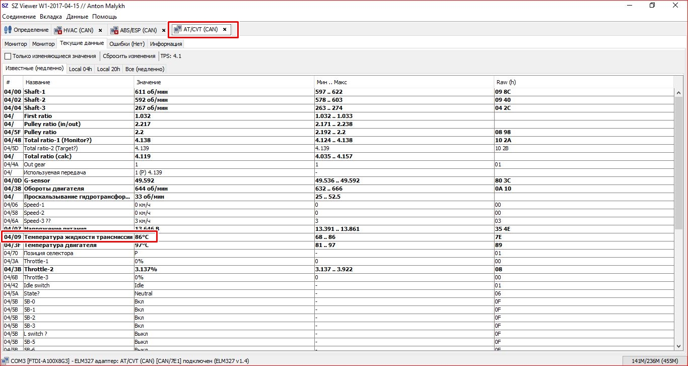 Единственное ПО,находящееся в открытом доступе и не требующее дорогостоящих адаптеров - SZ viewer.Эта программа видит вариатор, но счетчика старения жидкости я там не нашел.