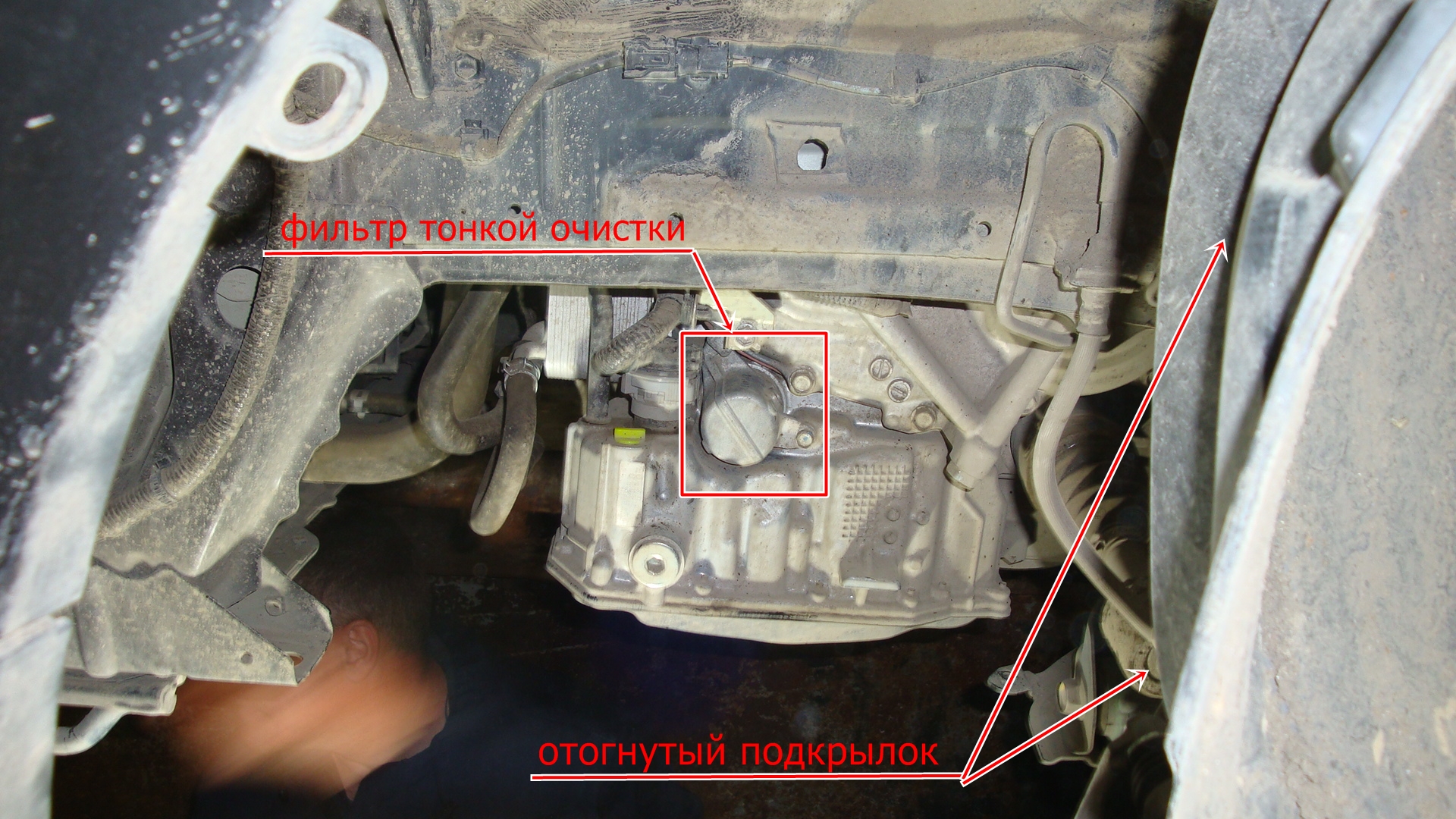 А каким образом заливали новое масло в вариатор? Какую трубку использовали? Там же отверстие маленькое под щуп...Вот и у меня дошли руки до замены жидкости.Попробую немного систематизировать разбросанную по теме информацию и визуализировать. Процесс замены подробно описан здесьНо два момента опишу в следующем посте.Жидкость продается в 4 литровой упаковке,а в нашем вариаторе заявлено 6,7 литра.Так что покупать надо две канистры(8 литров).Оригинальная жидкость для нашего варика Посмотреть вложение 170719 Зимой доливал жидкость Идемитсу(в оригинальную) https://suzuki-club.ru/threads/74186/page-19#post-1290308 За пол года жидкости не "конфликтовали",из чего сделал вывод что и такая подойдет. Идемитсу почти в два раза дешевле Посмотреть вложение 170720 Фильтр тонкой очистки Посмотреть вложение 170722 Прокладка сливной пробки Посмотреть вложение 170723 Забегая вперед ,скажу что прокладка поддона отошла самостоятельно(без повреждений).Но мне машина нужна ежедневно и я не стал рисковать,предварительно заказав прокладку поддона Посмотреть вложение 170724 Она оказалась металлизированная(самостоятельно не изготовить) Посмотреть вложение 170725 Для доступа к поддону CVT надо открутить пластиковую защиту Посмотреть вложение 170732 Кто самостоятельно менял масло в двигателе знают это.Слитая жидкость визуально темная и не прозрачная(как у Lexx13, )пробег 47 500 км.На поверхности поддона грязи нет Посмотреть вложение 170727 На магнитах крупной стружки нет,но мелкой грязи прилично Посмотреть вложение 170728 Посмотреть вложение 170729 Старый и новый фильтры тонкой очистки Посмотреть вложение 170733 [DOUBLEPOST=1503933823,1503929990][/DOUBLEPOST]Да ,на нашем авто смена жидкости не предусмотрена(нет лючка для доступа к фильтру тонкой очистки).Но мы не ищем легких путейДля доступа к фильтру надо снять переднее левое колесо,открутить переднюю половину подкрылка(3 самореза и 3 пистона),загнуть подкрылок и :meeting:вот он Посмотреть вложение 170734 Даже после снятия поддона,в CVT,остается приличное количество старой (грязной) жидкости.Сливается примерно 5 литров,а в Инструкции заявлено 6,7 литра.Она остается а каналах гидроблока,в радиаторе и гиротрансформаторе. Слить ее не представляется возможным.Но бОльшую часть можно вытеснить методом замещения.Для этого,после обратной сборки, установки всех фильтров и заливки жидкости(сколько слили - столько же и залили),надо снять с теплообменника верхний левый шланг Посмотреть вложение 170738 (эту информацию подкорректировал komakk, ).Я то снял нижний правый Посмотреть вложение 170740 и жидкость брызнула на чьи то ботинки,стоявшие возле стены:mosking:.Далее опускаем шланг в 1.5 литровую бутылку.Дальнейшее лучше выполнять с подмастерьем.Заводим двигатель,сливаем примерно литр,глушим.Доливаем (примерно литр).Снова заводим и так несколько раз.Конечно сливаемая жидкость не становиться идеально чистой,но становится прозрачной.Соединяем шланг обратно.Доводим температуру жидкости до необходимой(87 градусов),проверяем уровень жидкости на заведенном двигателе.Случайное фото помогло понять разницу между минимальным уровнем на щупе и нижней точкой забора жидкости(примерно 40 мм.) Посмотреть вложение 170741