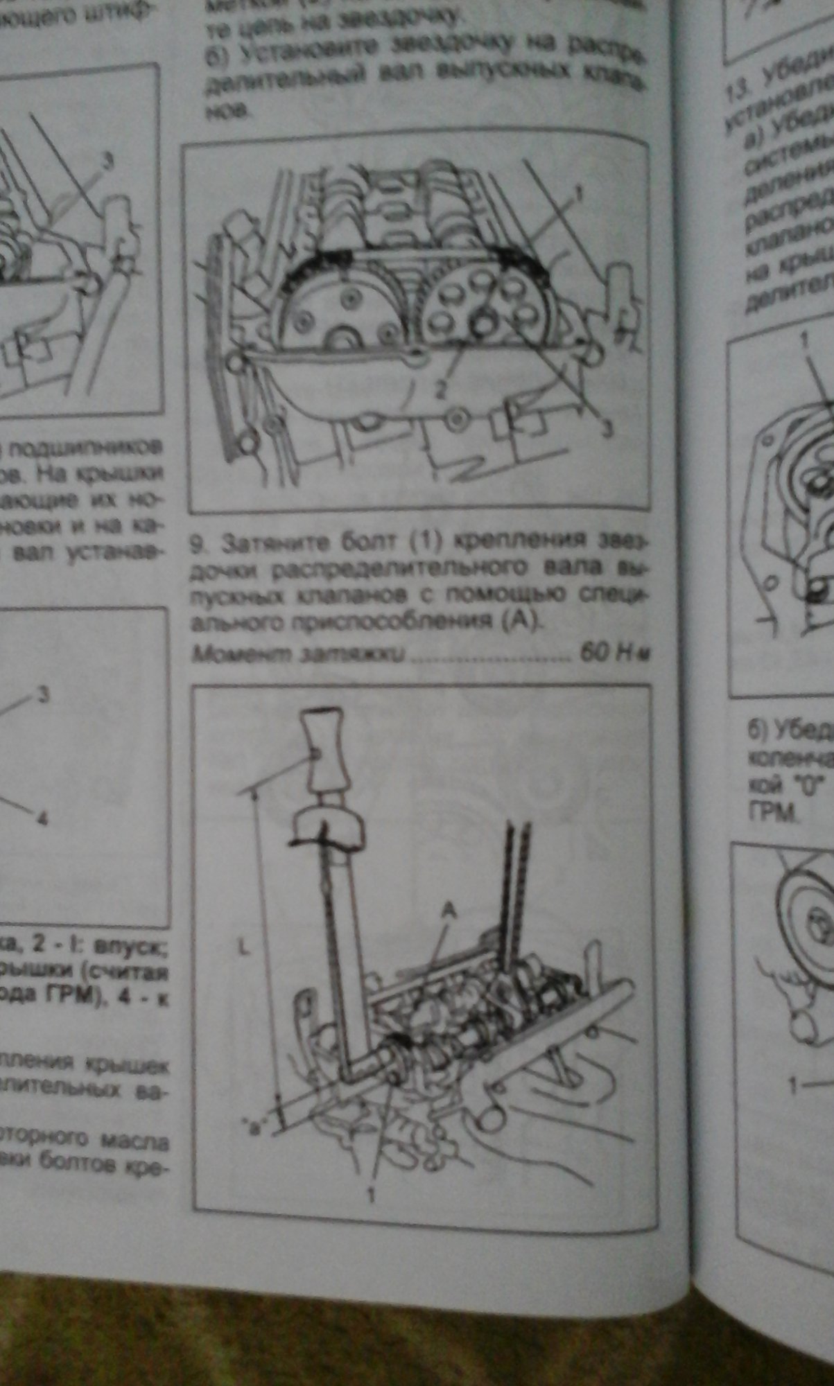 Опять крутом шкив за болт на 360° полный оборот, коленвал при этом делает поворот на 180°. Опять замеряем зазоры в 3 и 4 цилиндре на впуске и во 2 и 4 цилиндре выпуске. Записываем показания.