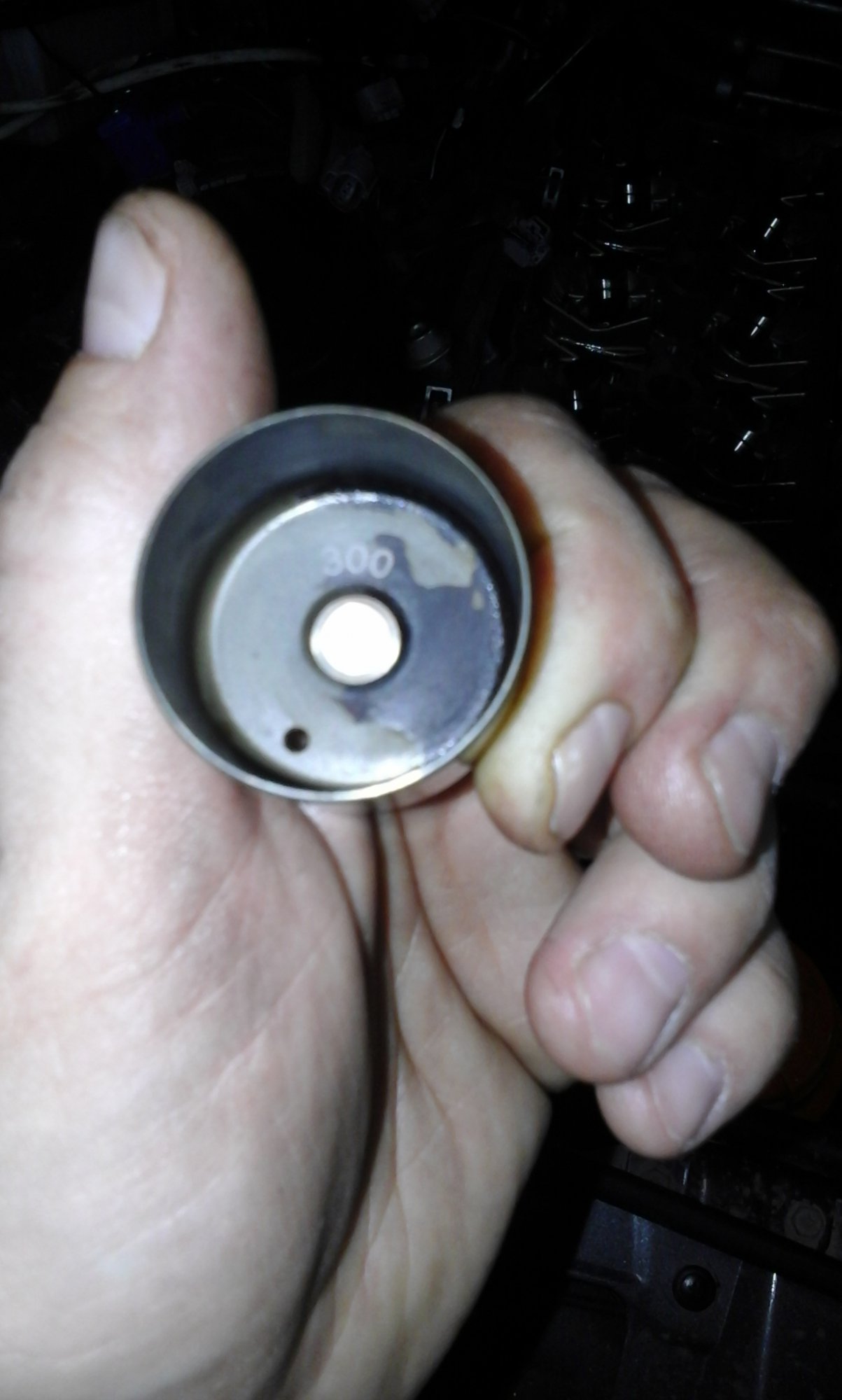 Долее берём магнит и им вынимаем стаканчики. Во впускном и выпускном распредвалах они взаимозаменяемы. На них с внутренней стороны нанесен размер. Долее по формуле рассчитываем требуемый размер стаканчика для впускных клапанов считаем так N=T+(A-0.20)мм, для выпускных так N=T+(A-0.30)мм. Где N толщина нового толкателя, Т толщина снятого толкателя, А измеренный тепловой зазор.
