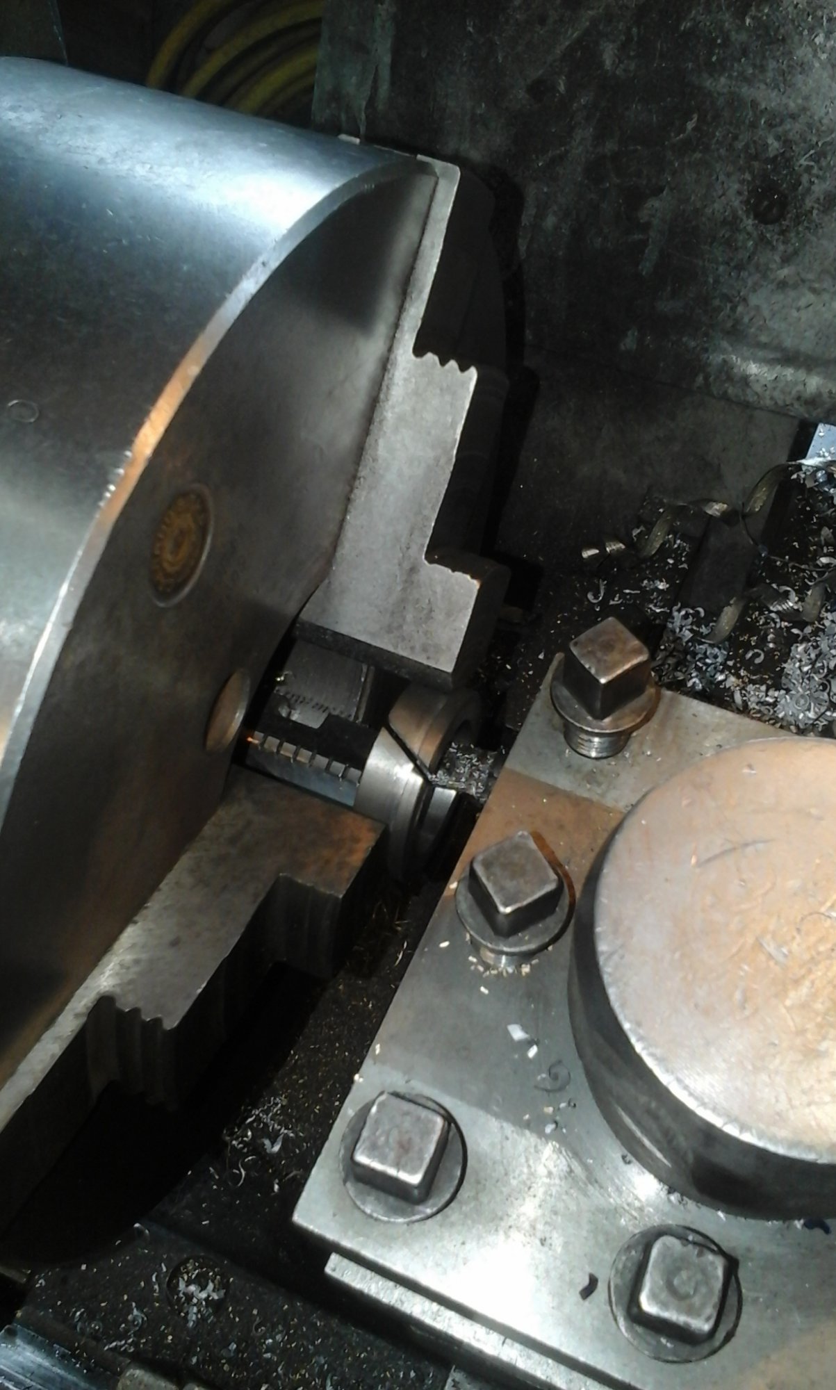 Но это не мой путь:stop:, во первых цены на стаканчики кусаются, а их мне надо было минимум 6 шт. Во вторых ждать долго. Я пошёл по пути экономии. Т.к я делал всё у брата с дядей, а у них есть оборудование для ремонта двигателей. Дядя мой токарь со стажем, сделал разрезную втулку под наружный размер стаканчика и теперь стаканчик можно было закрепить в токарном станке надежно не деформируя его. Сфрезировывали с внутренней части стаканчика т.к там нет такого трения как о распредвал. Подточил, замерил, подточил и так до нужного размера, итого на проточку ушло около 15 минут с изготовлением втулки.