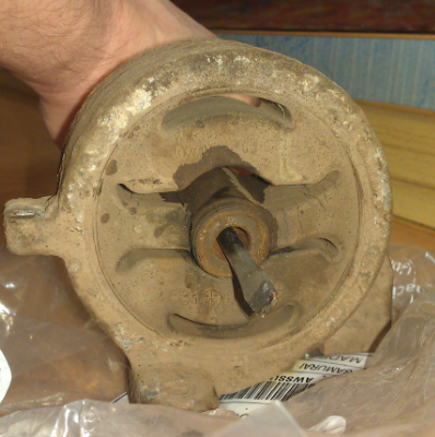Старая порвана, на фотке видно. Поставили новую но она лежит центральным болтом так же как (отвертка на фотке) внизу и не центруется кронштейном! Может я не понимаю, но по идее должно быть по центру.