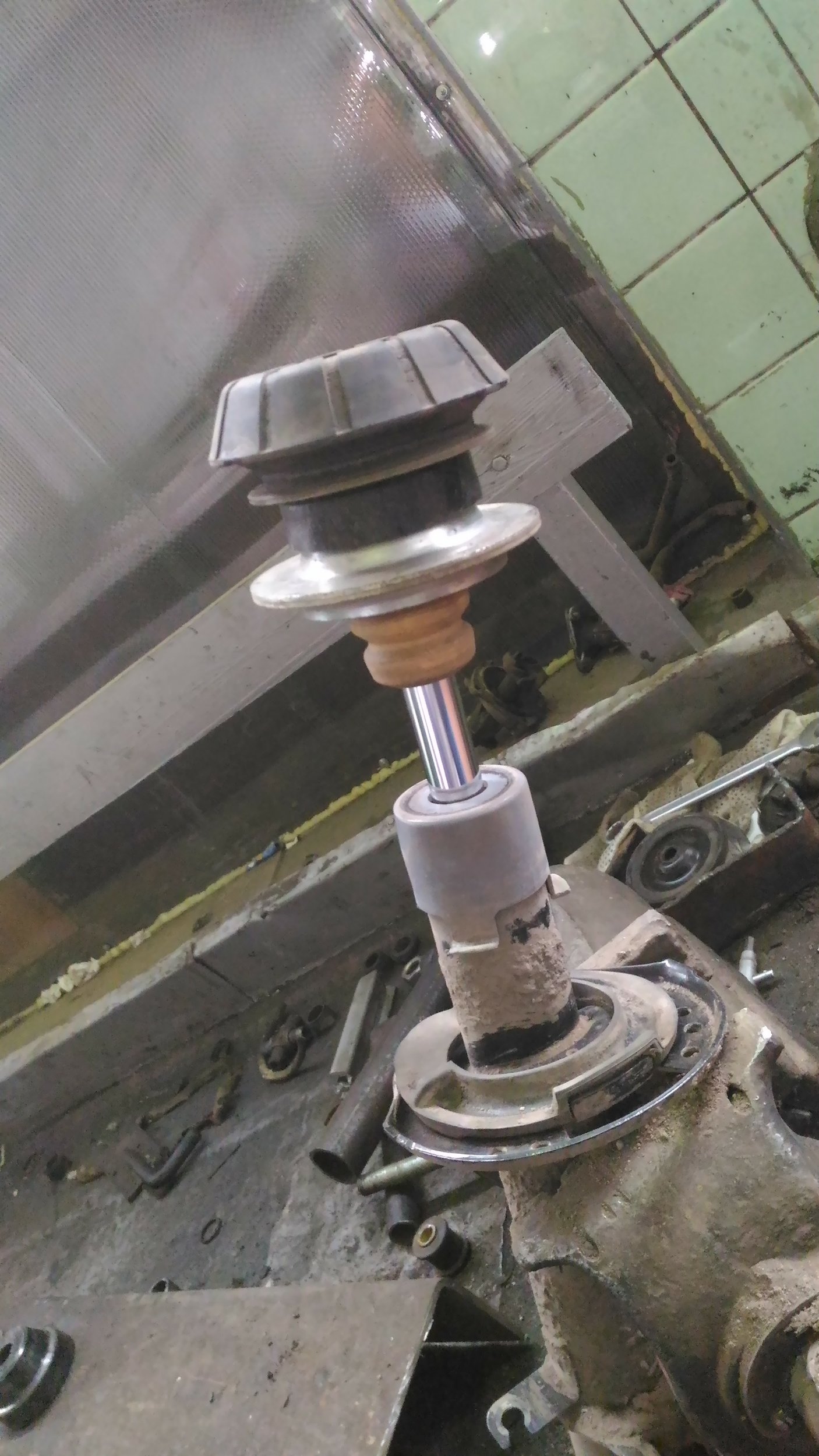 Если проставку делать 20мм,а переходник 40мм,то шток амортизатора опустится вниз на 20мм.При подъеме домкрата придется поднимать машину на 20мм выше,чтобы снять колесо.И при груженой машине( 5 человек плюс груз),шток будет ударяться в нижнюю часть амортизатора при езде по неровной дороге.И наоборот, если вообще не ставить переходник,то при движении пустой машины шток будет ударяться в верхнюю часть амортизатора.Значит, если не жалко,то придется срезать шток на 20мм.