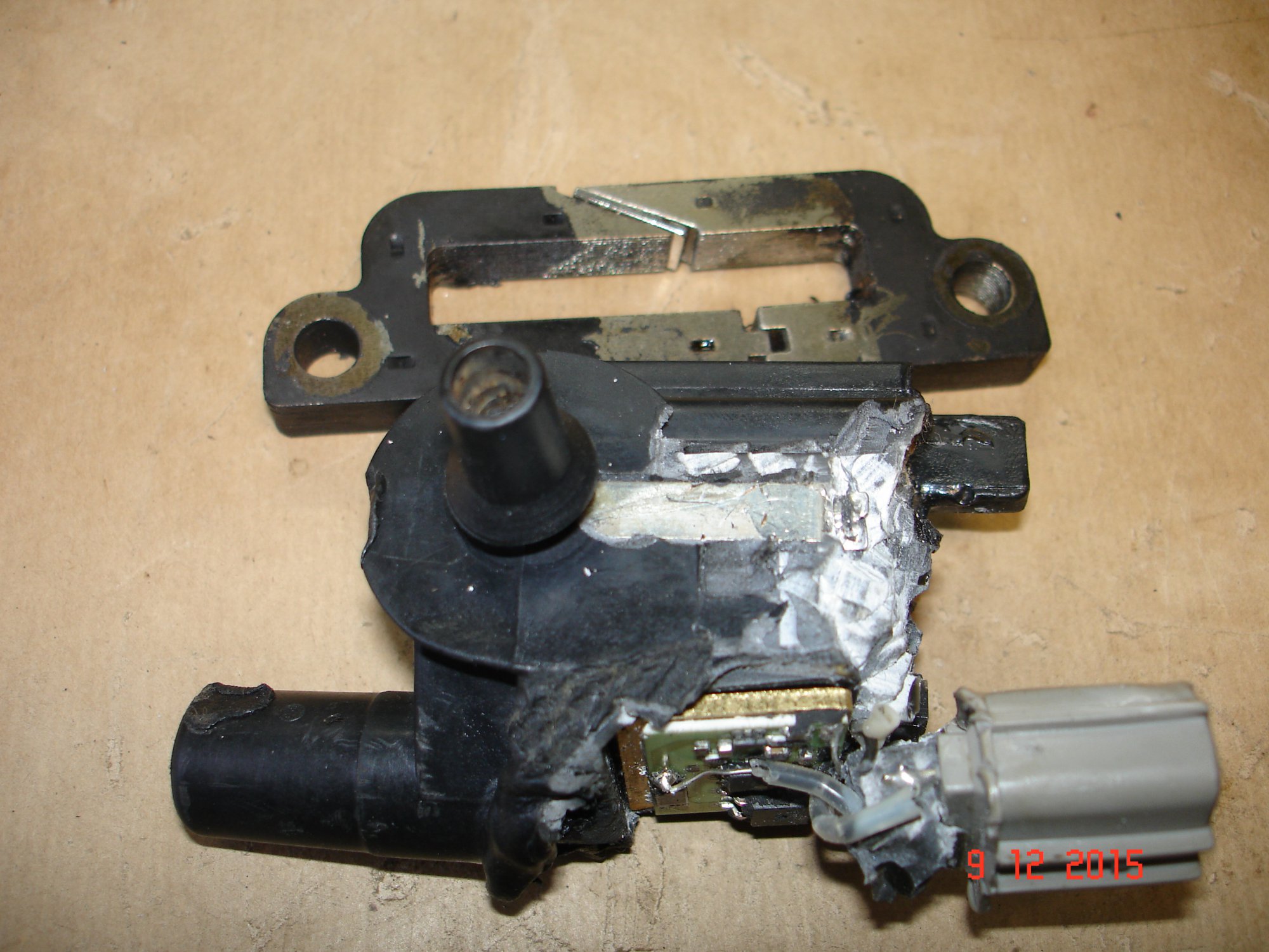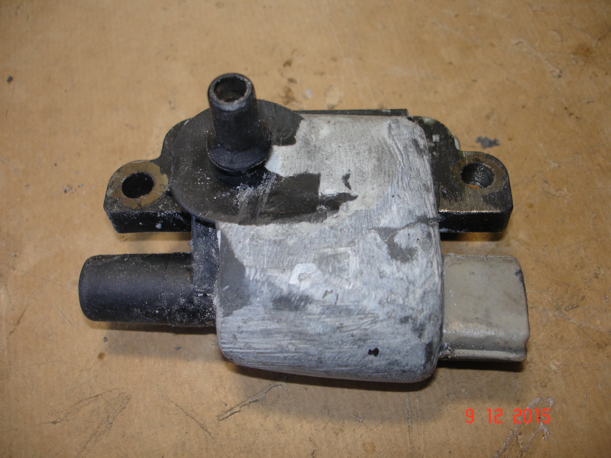 С родной катушкой DENSO когда-то замененной машина заводится и работает ,но загорается чек,в натяг ехать нет возможности, надо газовать больше 1500 об/мин чтобы тронуться,нет мощности плохо тянет,но идет.Так как у поврежденной китайской катушки дорога всё равно одна , в утиль,было решено ее препарировать и посмотреть ,какого цвета у нее кровь ,и за что просят столько денег..фотки прилагаются.