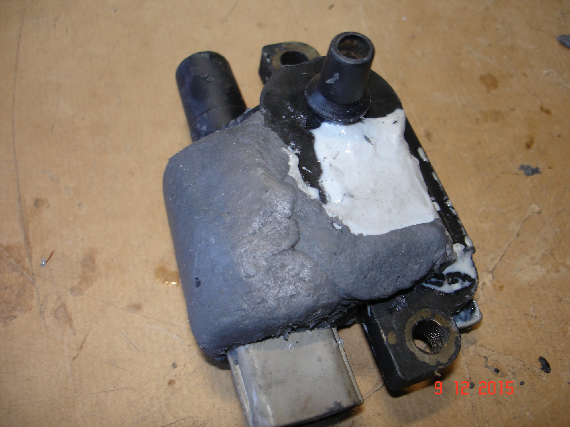 Перед установкой в темноте убедился что не шьют ВВ провода и нет никакого лишнего свечения,то есть пробоев изоляции еще где либо не наблюдается,пришлось немного обточить новый корпус катушки ,т.к.при лепке переборщил с размером.