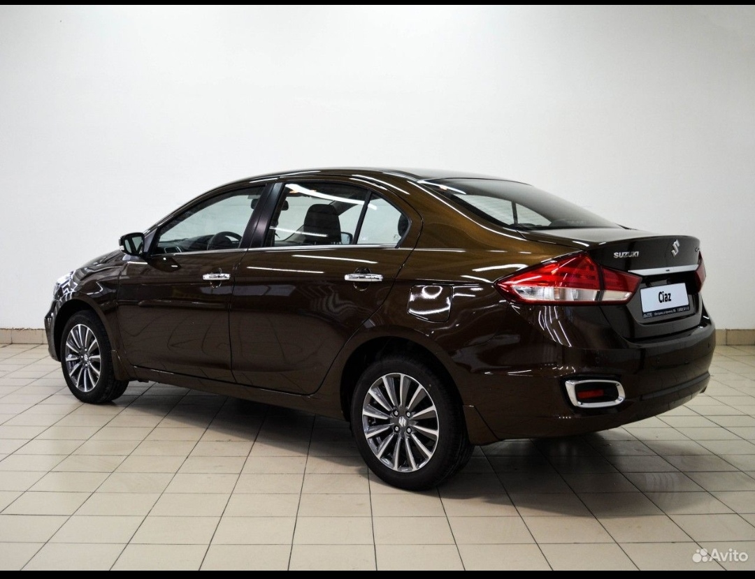 Ciaz. Завоз из Индии. Выглядит вполне достойно. 1.5-литровый атмосферник, 105 л.с., конский багажник - 565 литров, открывается с водительского места. Бесключевой доступ, заводится с кнопки. Максимально отодвинул водительское сиденье - сзади за ним уселся, не упираясь в спинку коленями, сантиметров 5-7 запаса было, но по высоте тесновато (рост 186). Оптика полностью светодиодная, включая ПТФ, причем головная оптика линзованый bi-led, светодиоды задних фонарей пофасонистее витаровских