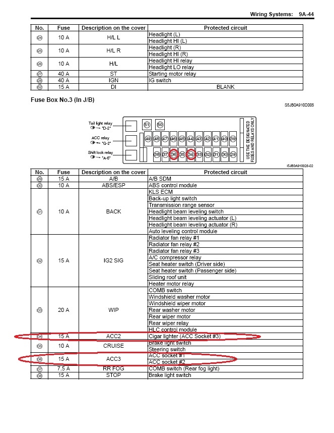 ЗЫ: Если предохранители 34 и 36 целы, то проверить предохранитель 41 (15А синий), который защищает АСС-реле, которое запитывает предохранители прикуривателя и розеток после поворота ключа зажигания в положение АСС: