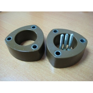Хотелось бы предостеречь сузуководов от установки проставок определенного типа для передник стоек. Сейчас данный тип проставок появился в онлайн магазинах автозапчастей среди опор передней стойки и многие могут обжечься как и я. Речь о проставке из полиуретана как на изображении, неважно какой высоты. Данная проставка пустая внутри, как голова инженера ее придумавшего. Конструкция нашей опоры такова, что в верхней части есть бортик из резины, который упирается в кузов когда стойка сжимается. Устанавливая данную проставку мы лишаем опору верхнего упора и на хорошей ямке всю резину с шайбой к которой прикручен шток вырывает с корнями. После первой порванной опоры я подумал на ее усталость - заменил, когда вырвало и вторую новую - до меня дошло, выкинул их сразу же. Правильный проставки должны в конструкции примыкающей к опоре иметь такую же форму как и кузов, куда опора прикручивается.