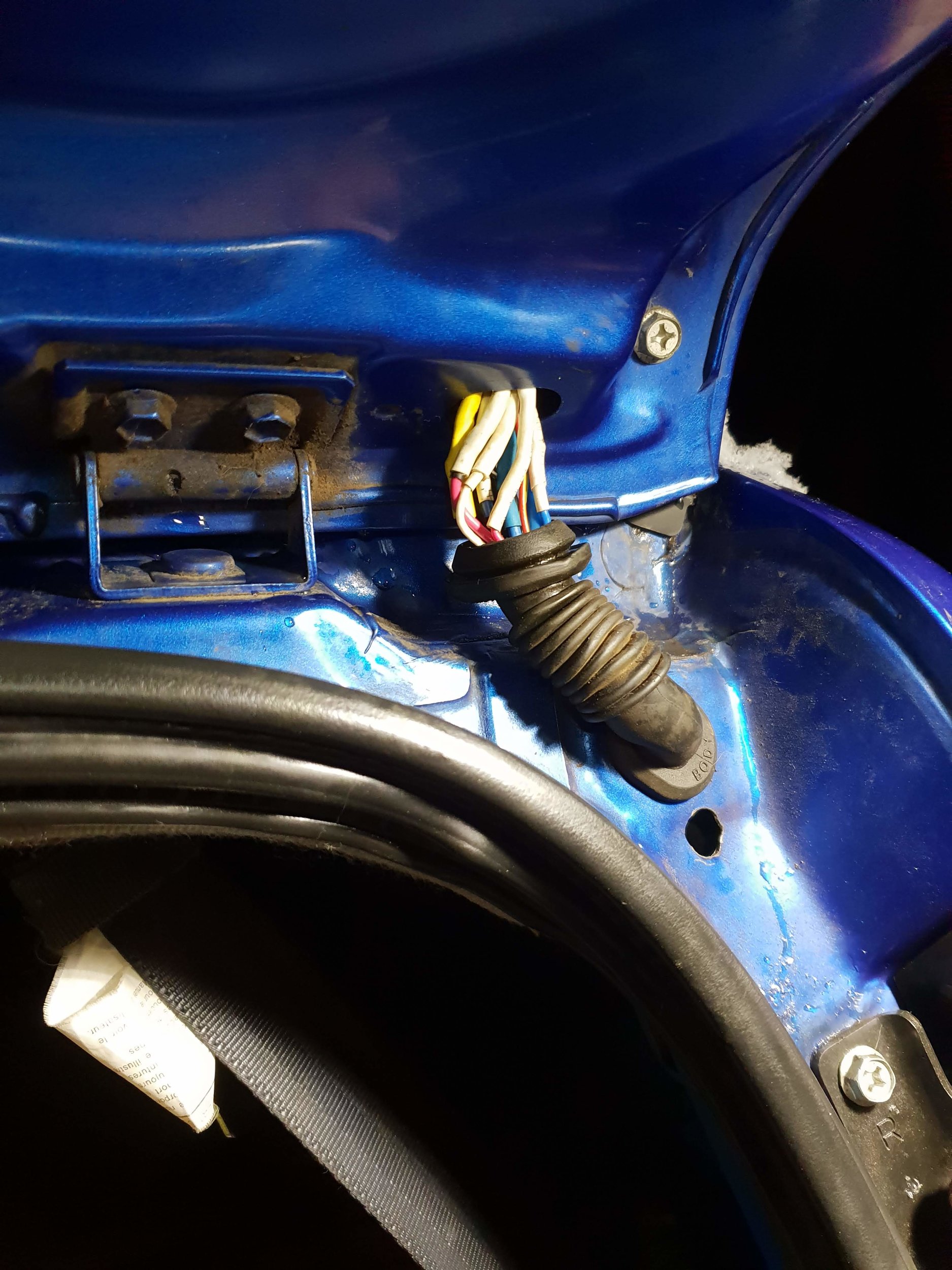 Достаточно снять правую верхнюю обшивку и вы обнаружите соединительный разъем жгута задней двери.