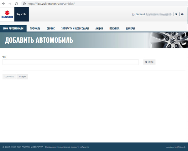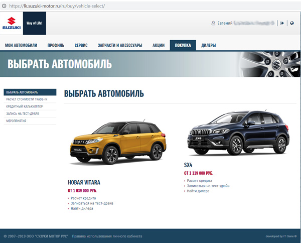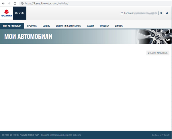 https://suzuki-motor.ru/ есть "Личный кабинет".