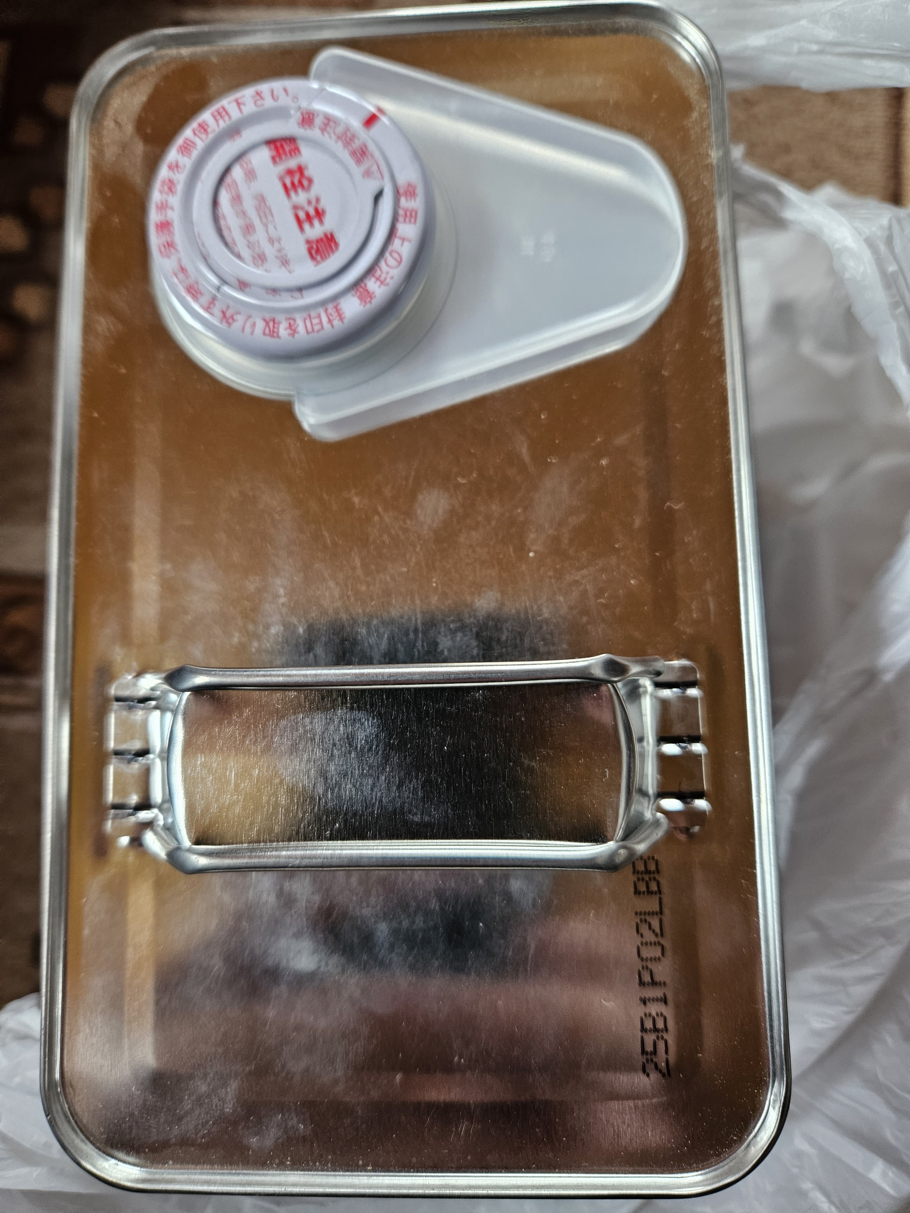 Эммм....Канистра пятилитровая от бутылки вдоль разрезана была, в неё сливали, ровно по середине слилось, это наверно 3 литра, может побольше.