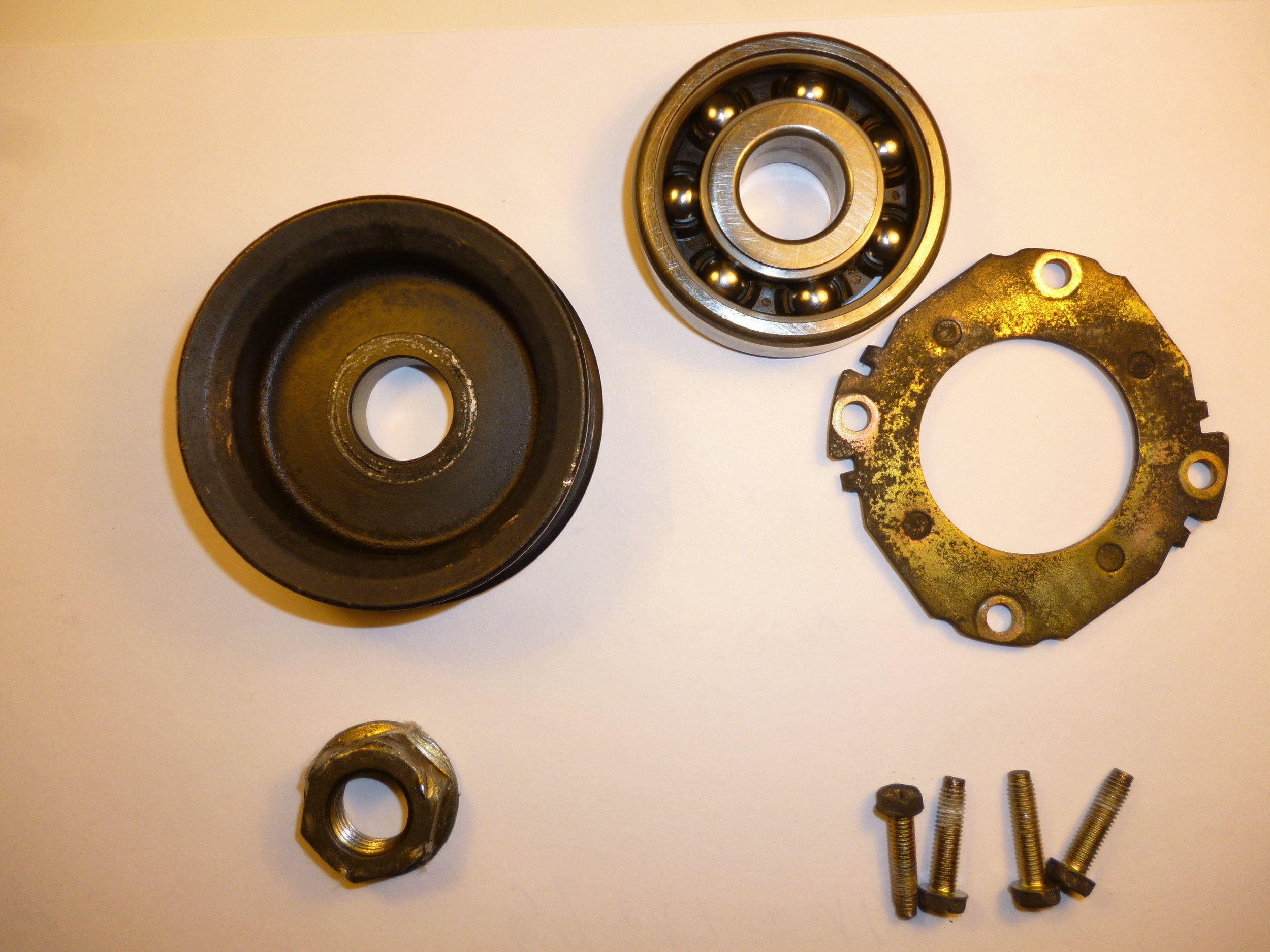 не удалось открутить гайку крепления шкива. Видать закисла. Капнул ядовитой слюной тролля, должно ослабнуть. Если не поможет, приварю гайку к ключу электросваркой.