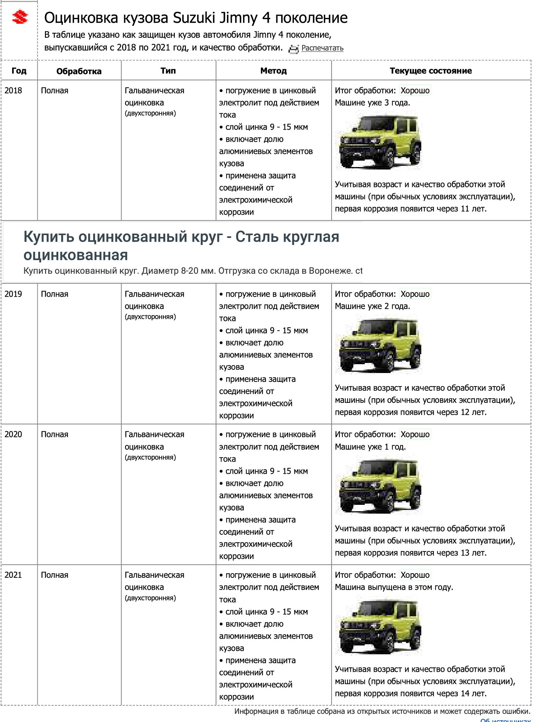 Сузуки Лиану цинковали если не ошибаюсьЯПы никогда не оцинковывавали кузова,в отличии от того же ФВ, по этому и не надо брызкать слюнями от нового джимника,я ещё на первых страницах писал,что все пробемы старого по проблемныа местам актуальны и в новом кузове,даже список приводил ржавеющих частей кузова..