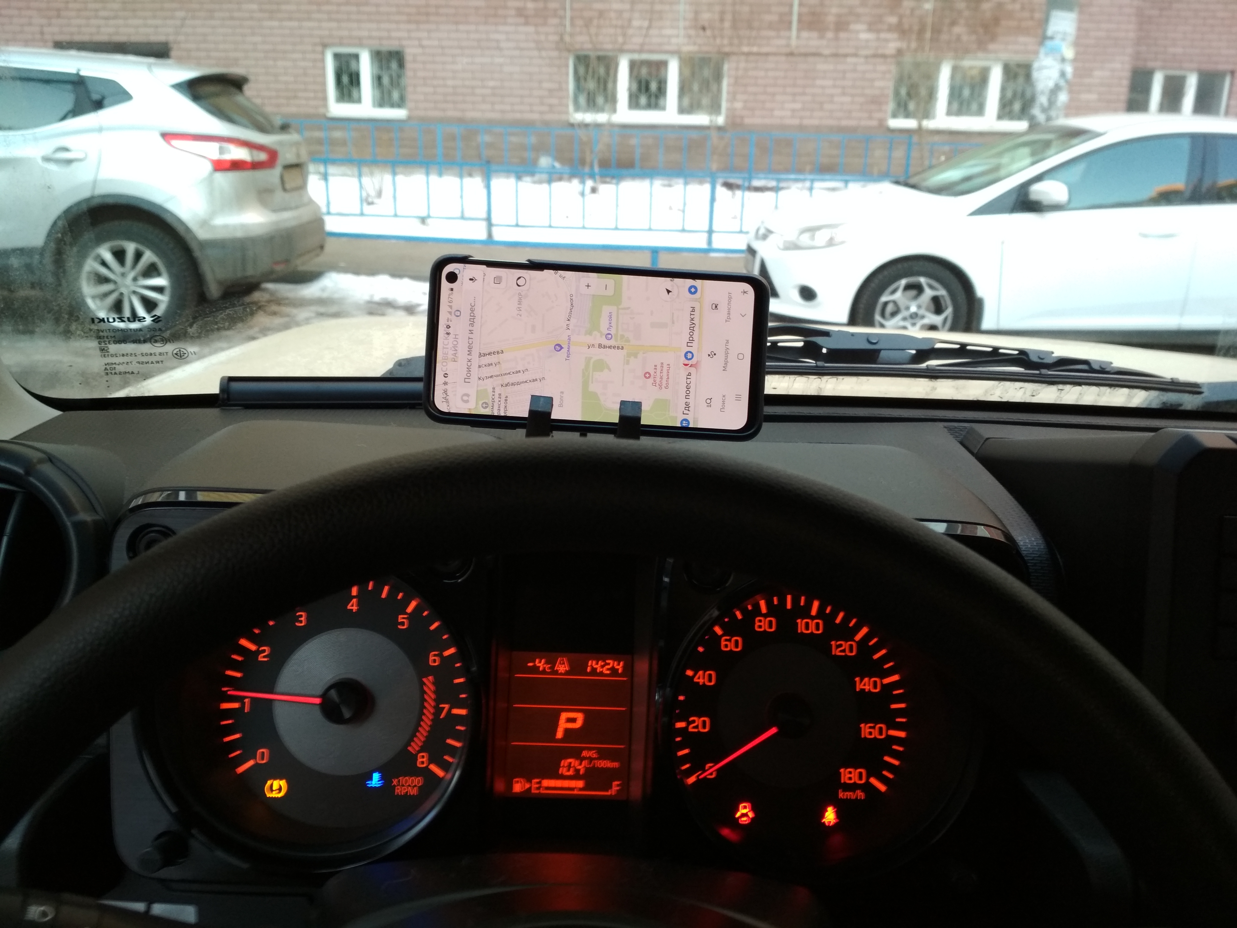 Спасибо! В горизонтальном положении сильно мешает на приборке обзору спереди? В навигатор то точно смотреть самое удобное расположение.Сфоткала. Держится крепко.