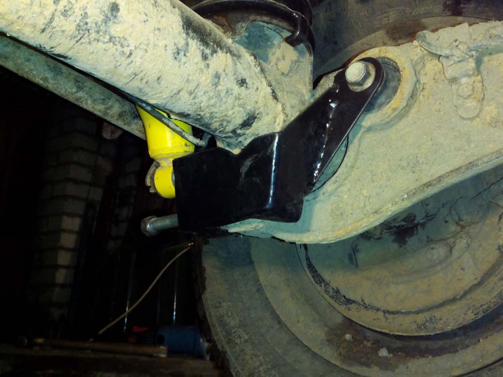 выравнивают болт аморта относительно верхнего крепления, правка 5 градусов (под лифт 75мм), поднимают крепление на 30мм(можно сделать больше)