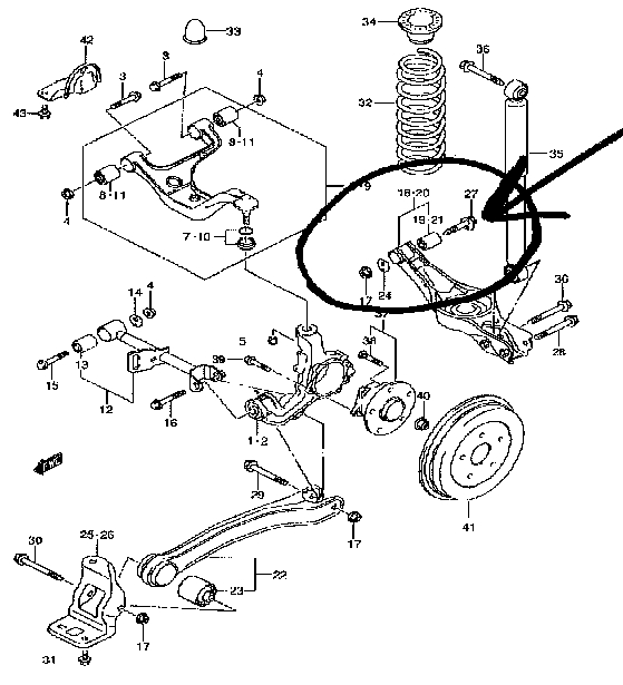 Болтом под номером - 27, который крепит задний нижний рычаг к подрамнику, регулируется угол развала задних колес.bos44 написал(а):Ага, ага - значит, я права, сзади тоже развал регулируется![]()