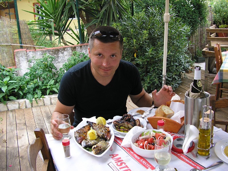 Лех, в Хорватии лучше? Ты уже приехал? Эти маленькие кальмарчики называются Supia, самое вкусное лакомство на гриле. Чтобы их достать в Греции нужно проплавать часов 7. Обычно днем они на глубине. Краб тоже достойный. Руками, смотрю, взять побоялся, судя по дырке в панцирену у меня тож скромно, но разочарования пока не испытываю