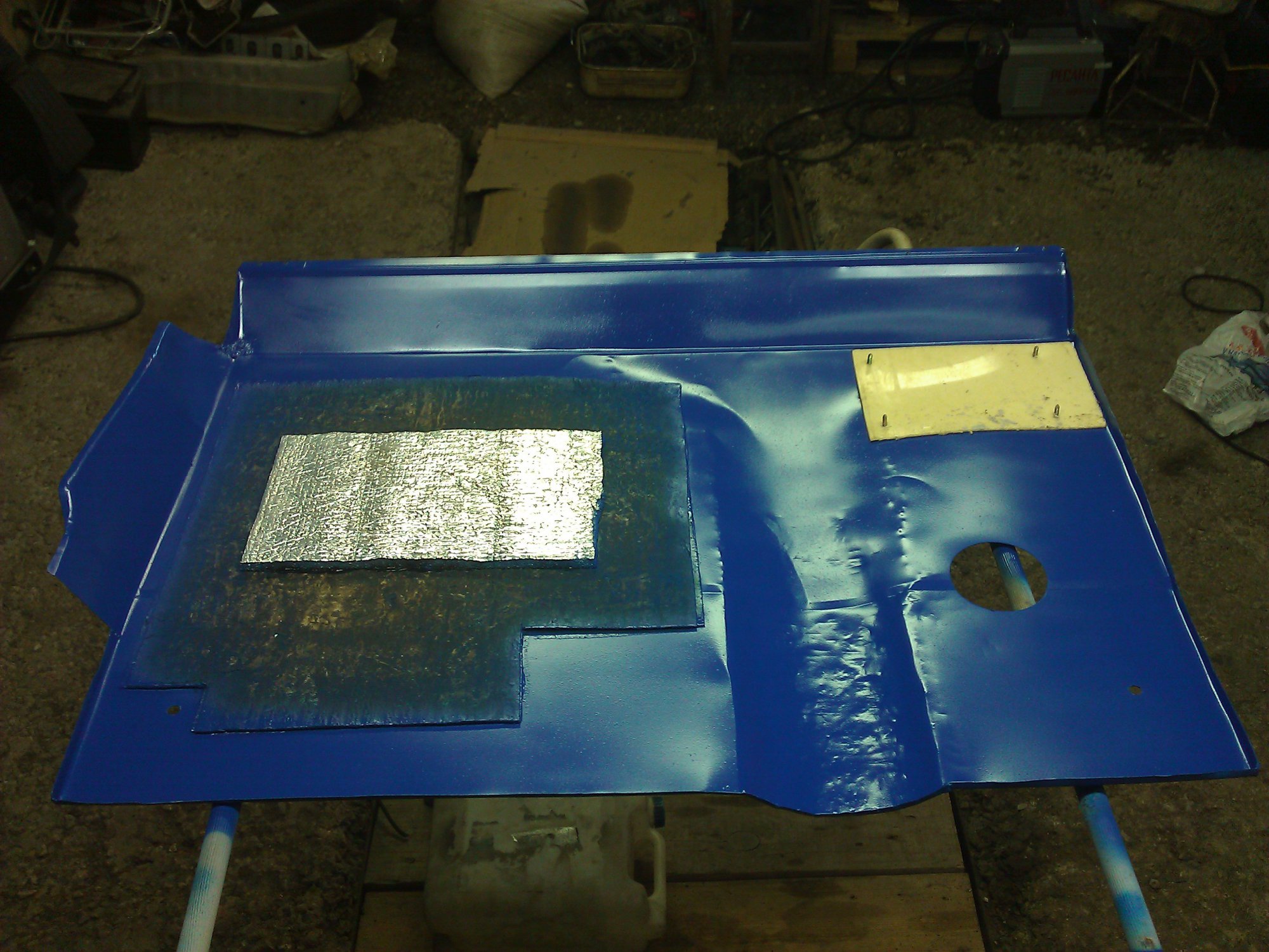 Выстучал ложбину под выхлопную трубу, чтобы не касалась, вырезал отверстия для слива масла и замены маслофильтра, наклеил шумоизоляцию, чтобы тонкое железо не резонировало. Сделал кронштейны для крепления - спереди 2 крепятся под болты стабилизатора, сзади 2 в штатные отверстия в лонжероне, где крепится рычаг подвески.