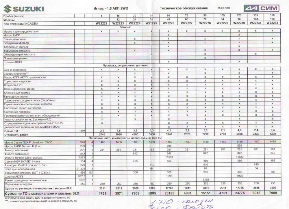 ТО- 15000 - 3500 рэ.(масло, фильтр, регулировка)