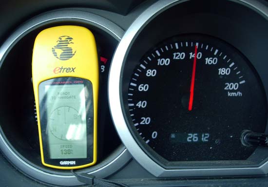 У меня на штатных колесах всегда показывает на 5 км/ч больше, чем по GPS. Где-то читал, что это специальная фишка почти на всех машинах, так сказать, последний рубеж защиты от радара ГАИ, типа того.