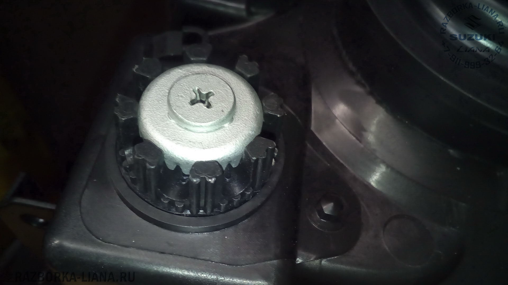 В фаре разрезная пластиковая втулка с резьбой. Нужно загнать туда винт до упора (до корпуса корректора). Только потом механически отрегулировать в ноль и подключить разъём питания.