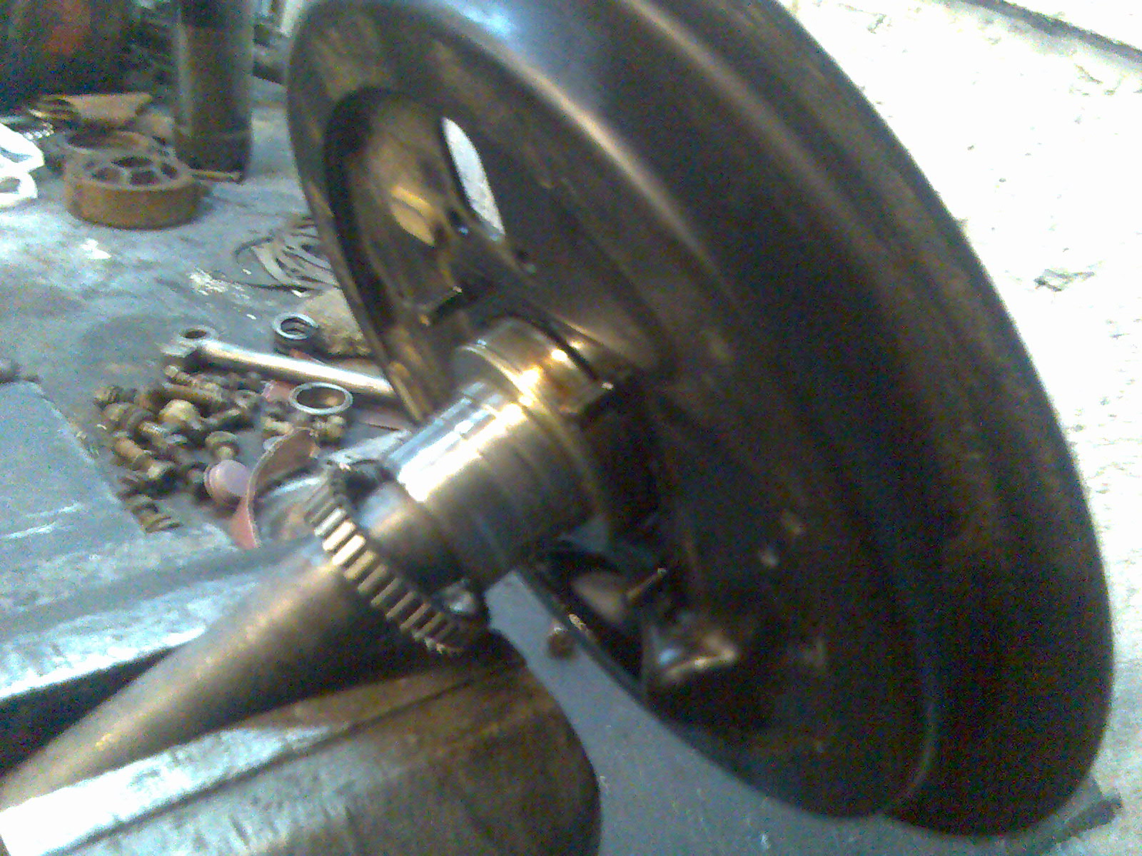 Но я не парюсь по этому поводу и на втором колесе тоже позже сниму шестерёнку и поставлю запорную втулку от АБС-ной машины, но без шестерёнки АБС.