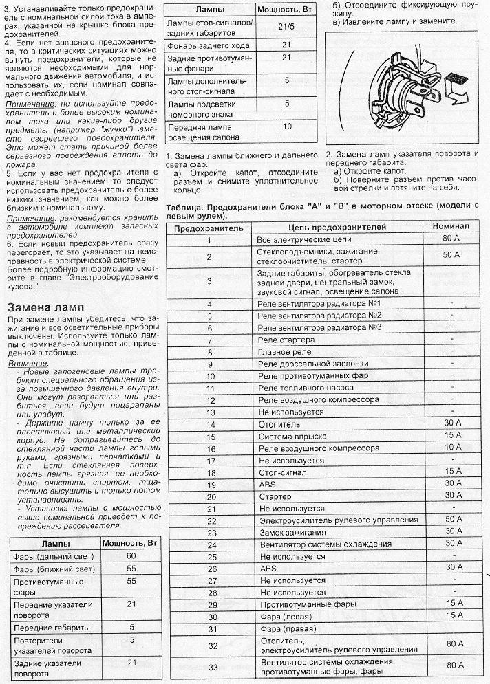 Ниже две странички по предохранителям. Открой их в отдельном окне для лучшего обзора. Там написано и наглядно показано, что где должно стоять и за что отвечает. :D