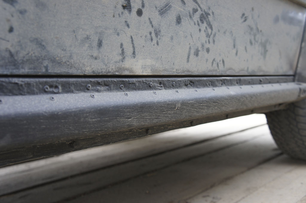 Порогв небыло впринципе. Причиной тому послужили камни. Где то я их насобирал, когда играл в "большой и страшный жип" и понеслась.. За 1,5 года сгнили к чертовой матери вместе с нижней частью задних арок. Думаю именно по этой причине, так как когда я брал машину, они были более-мене живые и вскрытие показало, что до меня не делались.