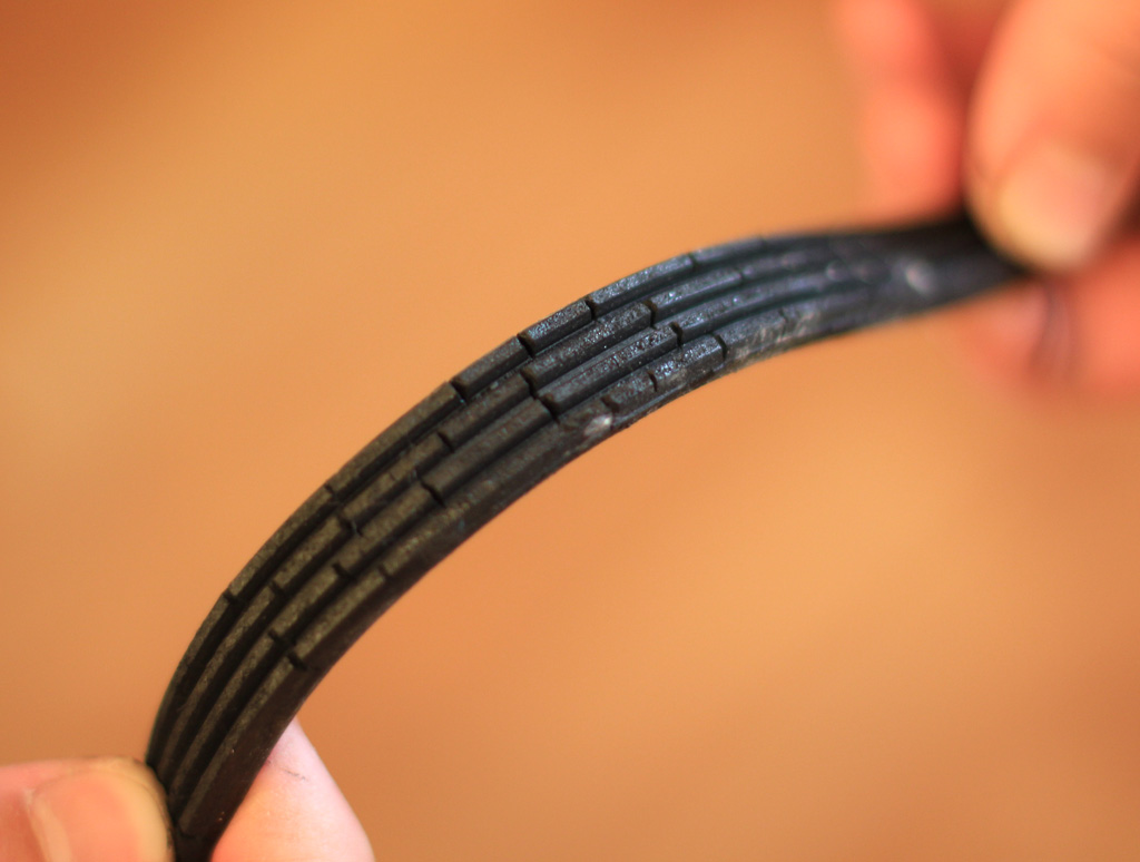 Менять. Это не алюм. крошки, а мелкие запиленные камешки.Пробег 60 тыс. Так выглядит ремень, в трещинах и блестят какие-то металлические вкрапления. Надо менять? Свиста нет. Отчего могут быть быть эти алюминиевые крошки?