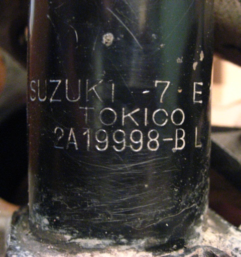 Заменил передние амортизаторы опять же на Tokico, но уже без надписи Suzuki на корпусе, попутно для профилактики поменял и стойки стабилизатора, так как езжу в основном по городу решил не заморачиваться с поисками амортизаторов от KYB. В целом поведение машины стало на много более понятным, а контакты защиты двигателя с различными неровностями дороги прекратились. О том как будут ходить новые амортизаторы, да и машина в целом думаю рассказать позже в бортовом журнале