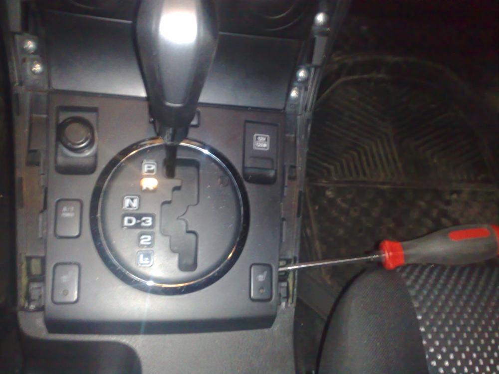 Подсвечивается. Сначала разбираем панель (накладки, магнитолу вместе с блоком упраления климатом и раздаткой). Желательно консоль АКПП прикрыть ветошью, чтоб не оцарапать. Снимаем разъёмы, откручиваем магнитолу от блока управления и где-нибудь в удобном месте (на столе) начинаем разбирать, снимаем плату и откладываем в сторону лицевую панель. Затем снимаем верх селектора раздатки и видим блеск гения японского инженера: лампа подсветки селектора раздатки установлена в резиновом патрончике который ПРИКЛЕЕН к плате. Дальше отрываем (это легко) патрончик от платы, меняем лампу и каплей секундного клея приклеиваем патрон назад. Втыкаем в плату разъём управления раздаткой и вкл. габариты - подсветка заработала, значит собираем всё в обратном порядке. На самом деле трудного ничего, только надо аккуратненько. Можно не клеить патрон, если подпаять на плату два штырька для креплени патрончика (как сделано в кнопках), но предпочел не возиться. Лампа как в кнопках, белая, безцокольная. Если сейчас пришлось менять - просто впаял бы белый светодиод, быстрее и дольше служит.