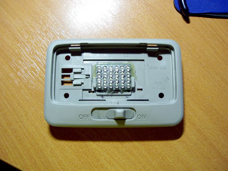 Приступаем: снимаем плафон в машине с салона (2 самореза выкручиваем), отключаем от проводов и несем в дом.