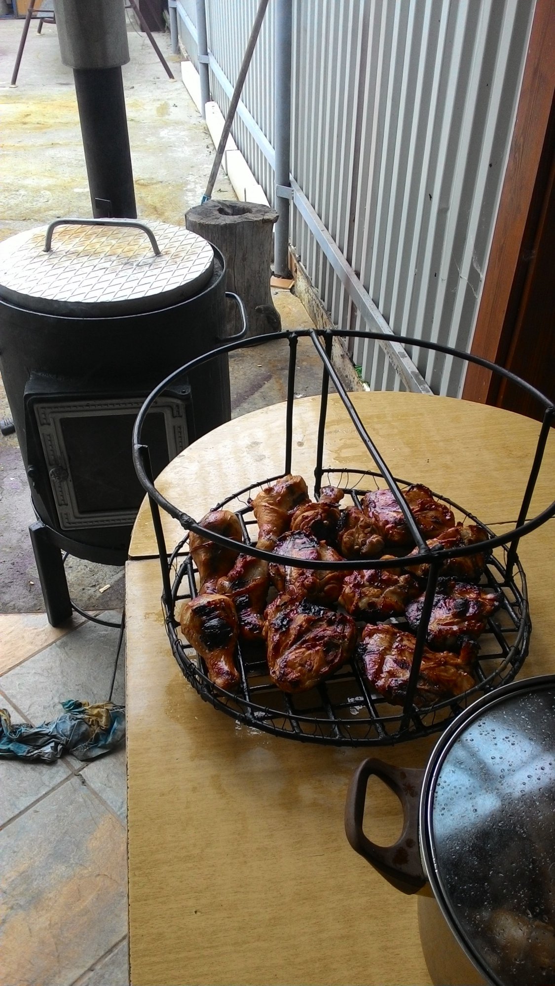Кстати ! опробовал на день рождения супруги в субботу 16 или 17 мая . когда дул сильный ветер и дождь лил не переставая целый день . Если бы не успел сделать к этому случаю печку . то гости точно бы остались без вкусненького ! Мангал зажигать не было смысла из за погоды[DOUBLEPOST=1432924528,1432923951][/DOUBLEPOST]Я вот только одного не понял: как можно было опробовать такое чудо без соклубней?