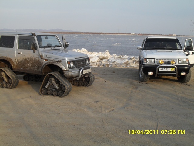 по этой причине считаю более разумно использовать гусеничную платформу с ременным приводом на заднее колесо, трансформирующуюся в прицеп путем опускания двух колес по центру, тем более такую платформу можно еще и водоплавающей сделать, хотя движка может не хватить.Вопрос был не "можно ли Джимни на траки поставить" , а "как их (траки)перевозить?)