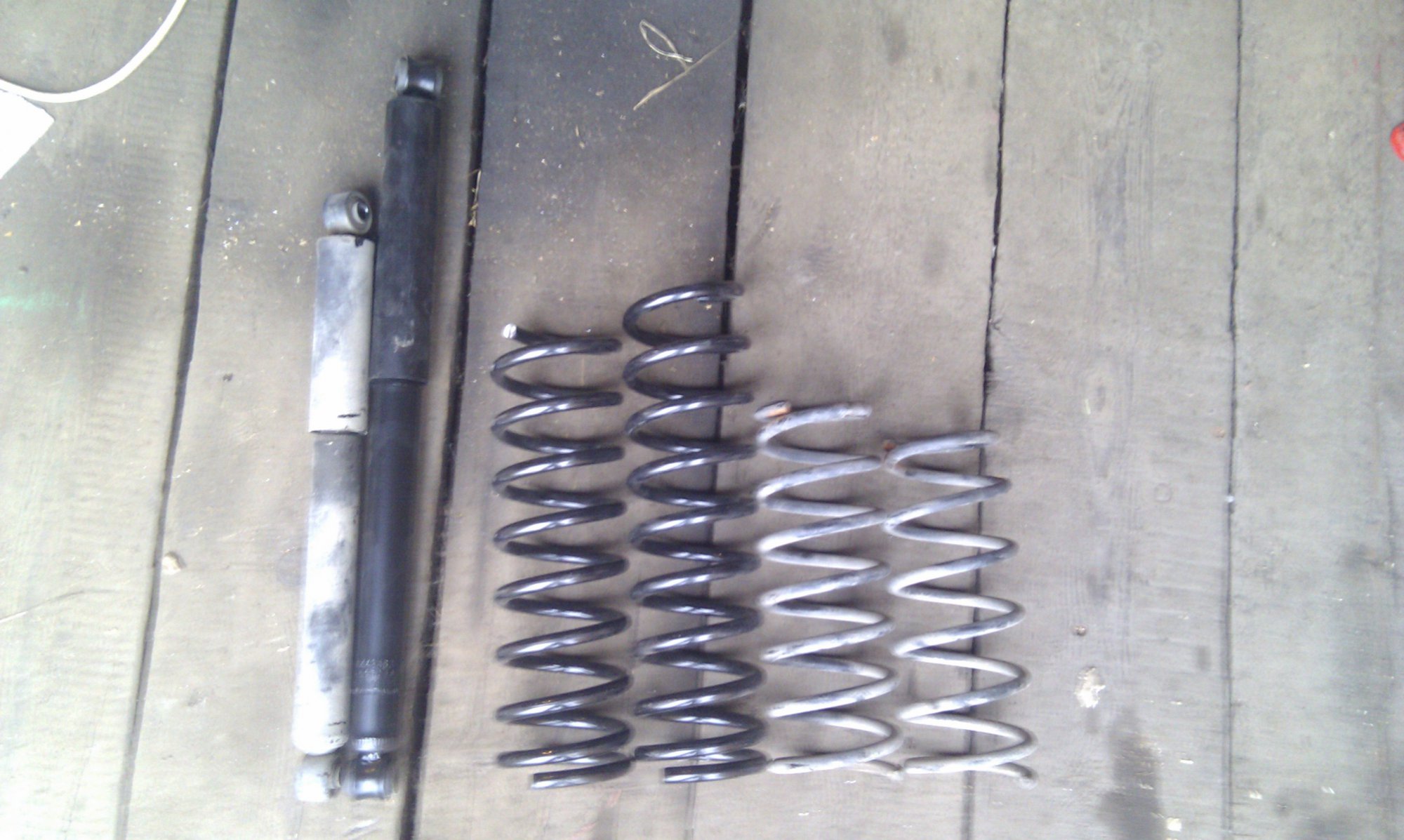 Пружины родные с переднего моста и проставки резиновые от ВАЗа тонкие сверху пружин.