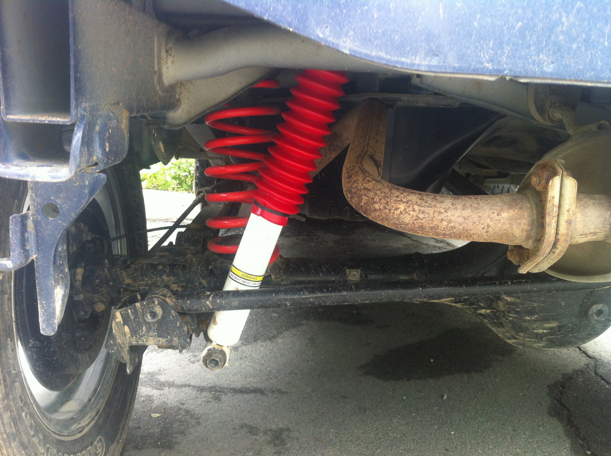 Амортизаторы задние от Grand Vitara, номера где-то здесь смотрел. Нижнюю втулку амортизотра немного сточил, чтобы влезли в крепление.