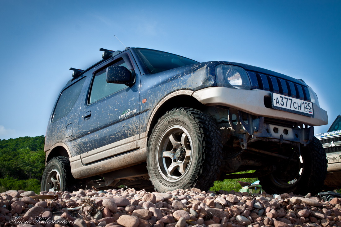 Jimny М15А АКПП 2007, пары в мостах 4.3, лифт 4', бодик 4 см., демпфер PRO-COMP, усиленные рычаги, все защиты, шноркель, лебедка T-MAX PEW-9500 Performance, резина 225/75 R16, хабы Warn, спальник.